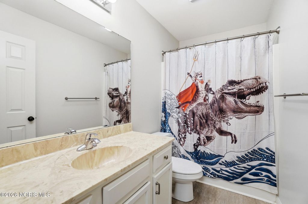 This beautifully maintained three-bedroom, 2.5-bath traditional home offers a warm and inviting layout with both a family room and a living room. The family room features a charming fireplace and opens to an eat-in kitchen with sliding glass doors leading to a spacious patio"”perfect for entertaining. Upstairs, you'll find three generously sized bedrooms, including a primary suite with a private bath. The finished basement adds even more living space with a large recreation room and a built-in bar area. Step outside to a beautiful backyard with plenty of room to relax and play, and enjoy the added privacy of having no neighbors behind you.