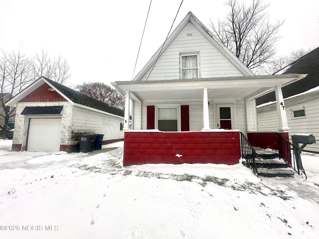 3 Bed 1 Bath home with bathroom, primary bedroom and washer/dryer hook ups on main floor. Open front porch & enclosed back porch. Garage has covered sitting area with swing. Comes on 3 parcels. Basement for extra storage. Newer stove and fridge that stay with home. Quiet Dead end street. BATVAI. Seller will make no repairs. Washer and dryer do not stay.