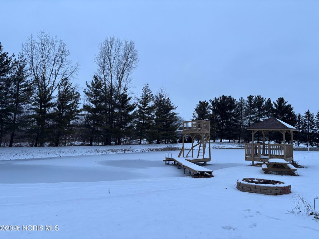 Beautiful home situated on 8 acres, with approximately 4.7 acres of wooded privacy. This 3-bedroom, 2.5-bath property features an open layout highlighted by cathedral ceilings and a cozy wood-burning fireplace. The living area includes a breakfast counter or wet bar, perfect for entertaining. Step outside to enjoy a stunning pond with dock and a charming gazebo, creating a peaceful outdoor retreat. A large 32×40 pole barn provides ample space for hobbies, storage, or equipment. Set well back from the road, the home feels quietly nestled among the woods. Inside, the bedrooms are exceptionally spacious, each offering large closets and abundant storage. ****professional photos coming soon***