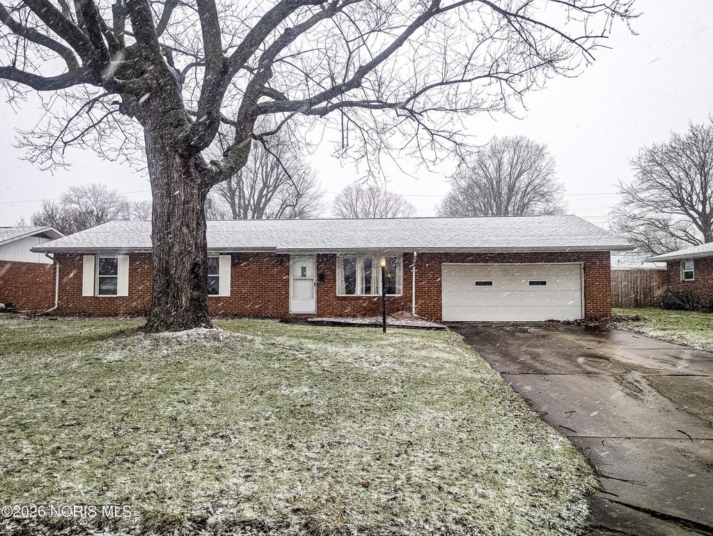 Move into this 3 bedroom, 2 bath brick ranch located in Hancock County. Primary bedroom with attached master bathroom. The rear room could be used as a dining room or additional living space. Natural gas fireplace in that space. The back yard features a storage shed, sunroom, deck with a natural gas hookup for your grill. Roof has a transferrable warranty that is $100 fee. Stainless steel appliances stay with the sale. Centrally located to schools, parks, hospitals and easy direct access to highways for commuting.