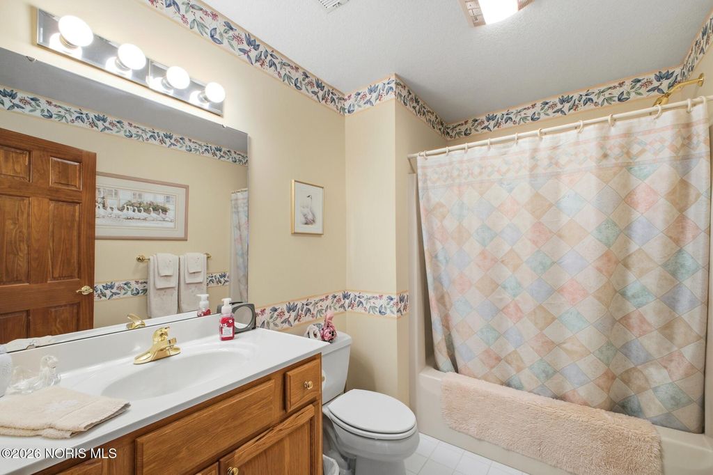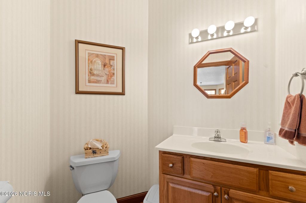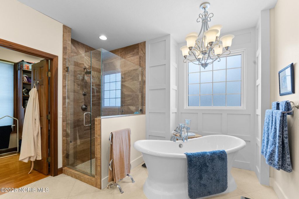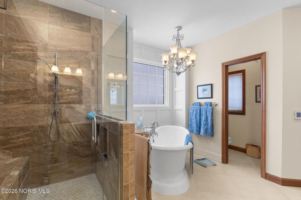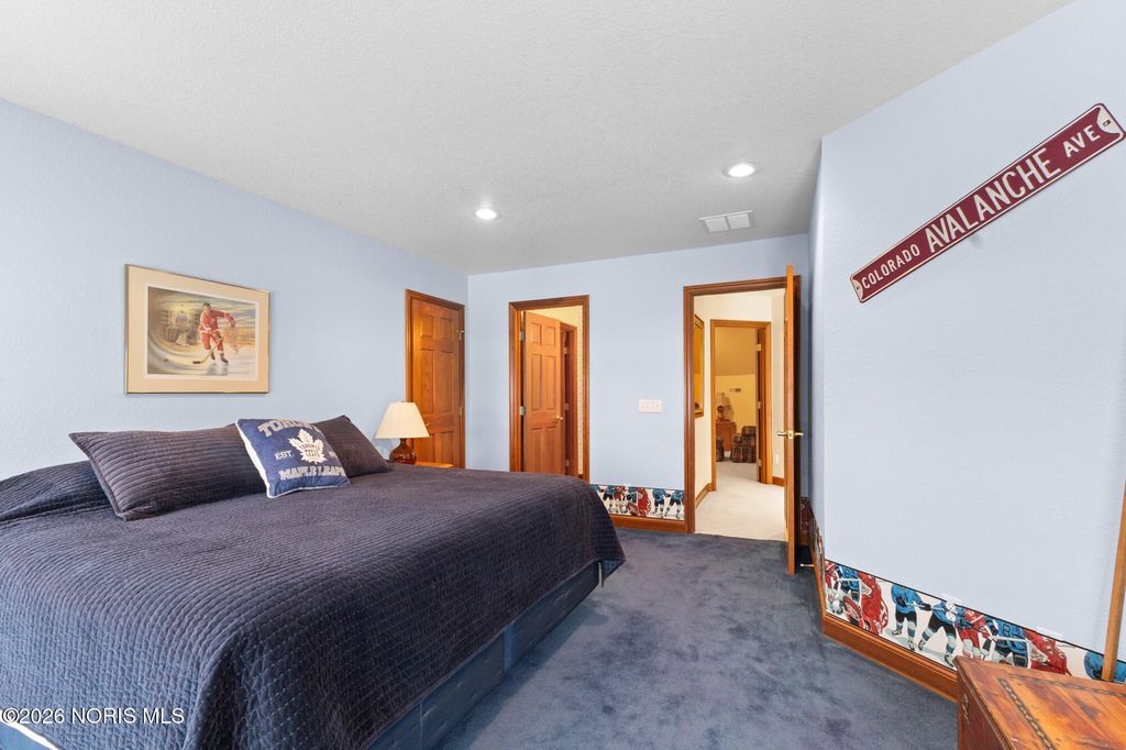 Beautiful custom home on the 12th hole and overlooking a pond in Stone Ridge Golf Course! Current owners have updated many things to enjoy! Finished basement with 1,200 square feet and boasts of a Theatre room with seating and a high definition projector --updated with 7.1 channel with HDMI. Half bath and separate "bedroom" space also in basement. The first and second floors have over 3,800 square feet of living and include huge rooms and closets, main floor master and ensuite, 3 additional bedrooms (totaling 4 plus room in basement), family room with vaulted ceiling and fireplace; custom kitchen with newer countertops and private office space/den. Roof replaced in 2025. Hot water tank '23; added insulation in attic '24; exterior painted '22; two furnaces and A/C units in '17; deck retrofit ' 19; updated master bath '20; and much more. Move right in and enjoy this home year round!
