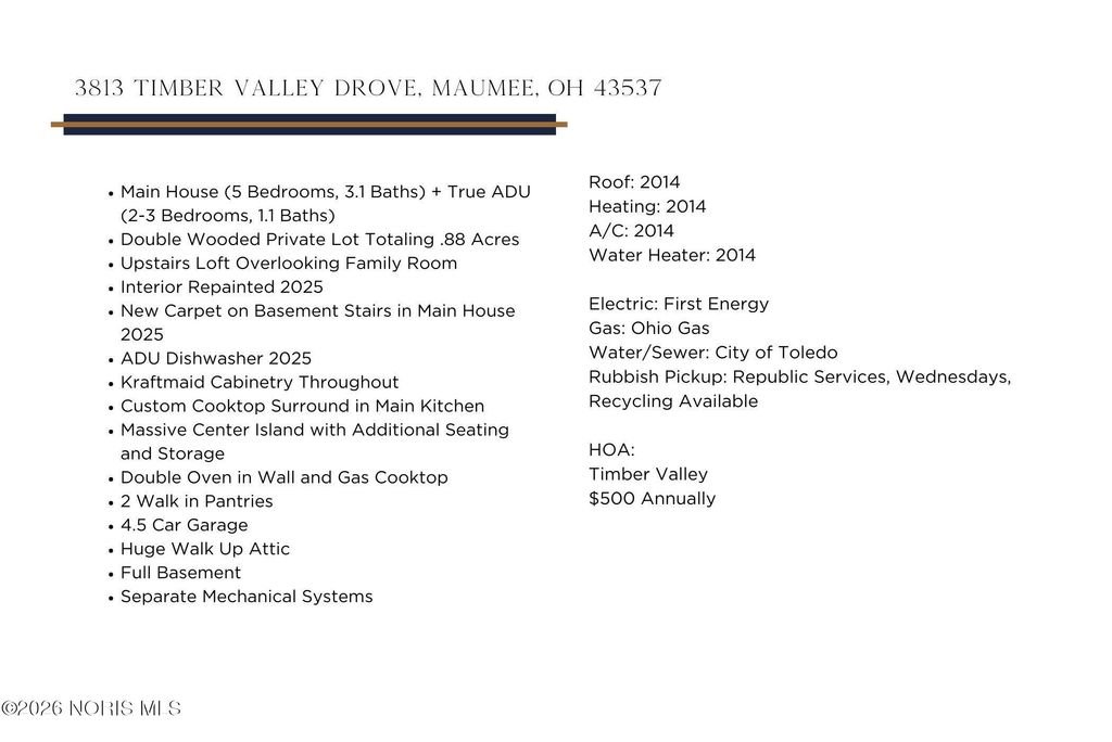 This one-of-a-kind home offers an extraordinary blend of space, privacy, and flexibility, designed to elevate everyday living while embracing togetherness and independence. Set on a rare, double wooded ravine lot, the setting feels peaceful and secluded"”your own private retreat surrounded by nature. The main residence is paired with a true, fully independent ADU offering approximately1,884 square feet"”ideal for multigenerational living, extended guests, or a private home office or studio. Both spaces are thoughtfully designed with warmth and functionality in mind, featuring soft neutral finishes and fresh interior paint. At the heart of the main house, the expansive kitchen invites gathering with its massive center island, walk-in pantries, KraftMaid cabinetry, and double ovens"”perfect for entertaining or everyday living. The open, airy floor plan flows effortlessly, while the first-floor primary suite offers a serene retreat. Upstairs, a versatile loft provides space to work, relax, or create. Practicality meets luxury with a 4.5-car garage, walk-up attic with abundant storage, and dual mechanical systems and sump pumps for complete independence and peace of mind. This is more than a home"”it's a thoughtfully designed lifestyle, offering privacy, flexibility, and comfort in a truly remarkable setting.