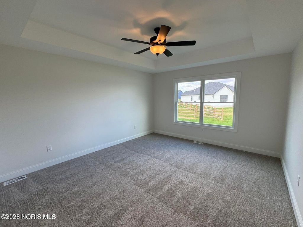 Newly built basement ranch overlooking the pond-The Eagle features spacious owners suite w/pan ceiling, walk In closet, double vanity w/granite tops, linen closet & enclosed water closet. Spacious Great Room w/fireplace, Center island kitchen w/ large walk in pantry. Covered front porch. Still time to choose preferred decor. Energy Star Rated home
