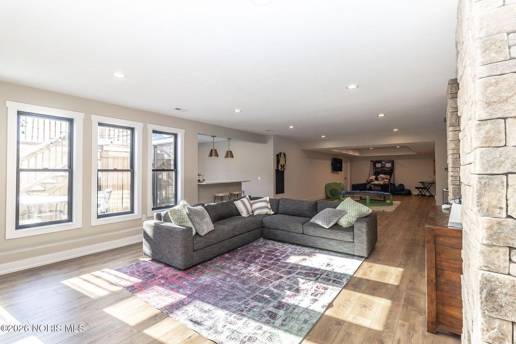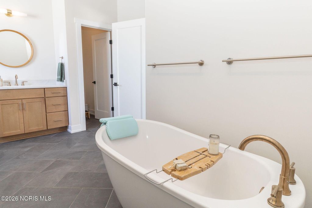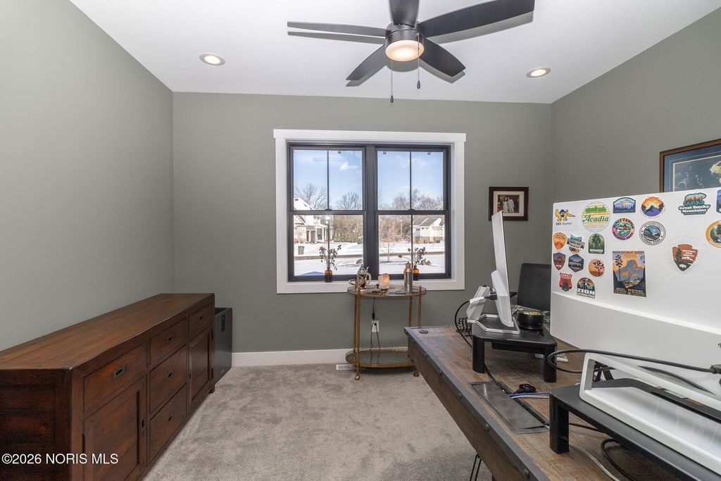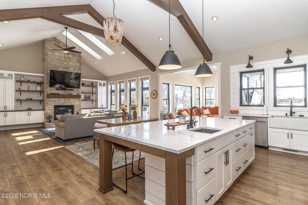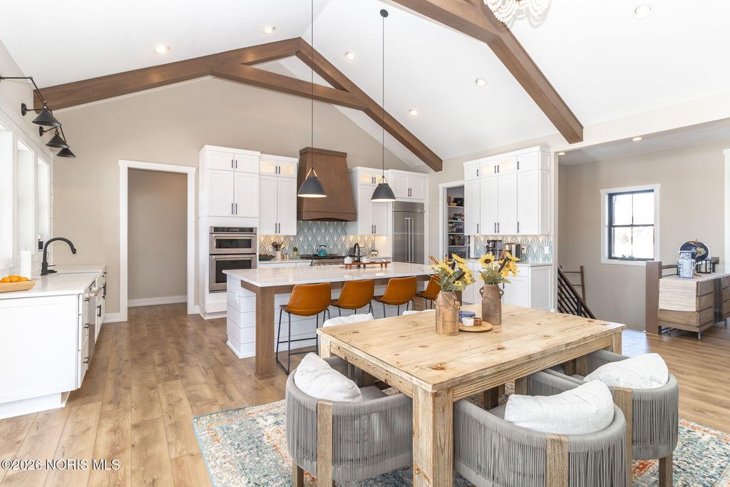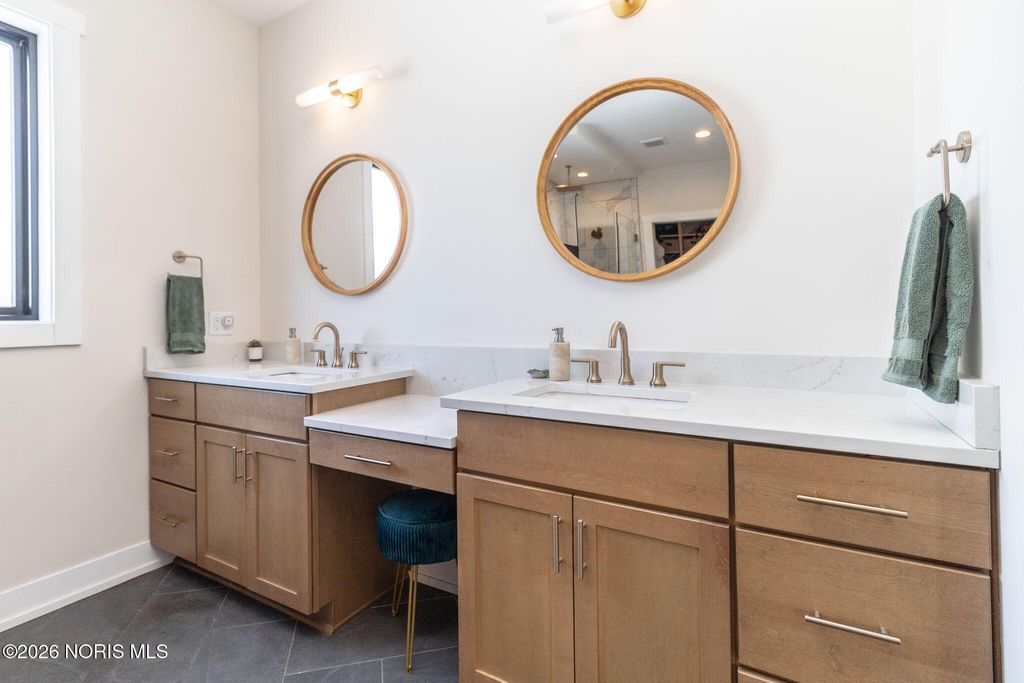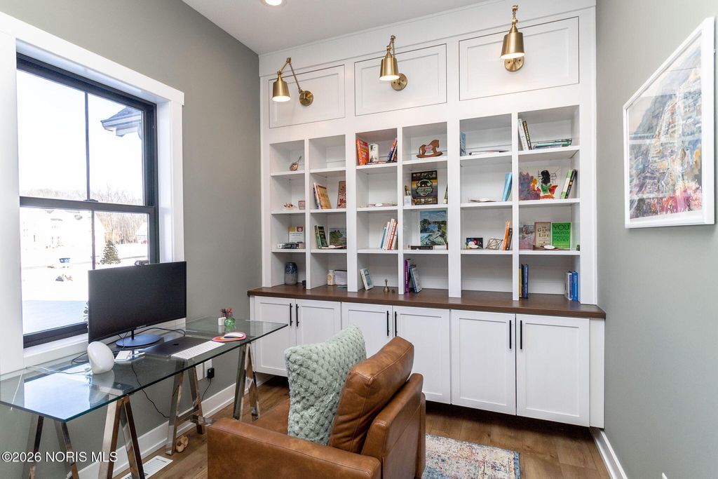 Custom built by Josh Doyle, this exceptional home is located in Sanctuary in the Woods, one of Perrysburg's most sought after luxury neighborhoods. Thoughtfully designed and impeccably executed, this home blends elevated craftsmanship with modern livability. The main level features an open, light filled floor plan highlighted by a stunning great room with soaring ceilings, custom millwork, and expansive windows overlooking the backyard oasis. The chef's kitchen is the heart of the home, showcasing high end cabinetry, premium appliances, generous counter space, a walk-in pantry, and an inviting eat-in area ideal for both everyday living and entertaining. The primary suite offers a private retreat with spa inspired bath, heated floors and custom walk-in closet, while additional bedrooms provide ample space and flexibility for family, guests, or home office needs. The finished lower level expands the living space significantly, featuring a large recreation area, full bar or kitchenette, additional bedroom and bathroom, and abundant storage, perfect for entertaining or multigenerational living. Outdoor living is equally impressive with a beautifully landscaped yard, expansive patio spaces, fireplace and an in-ground pool that creates a true resort style experience at home. Home also features Lutron-installed lighting and shades throughout as well as a tankless water heater. Located within the highly regarded Perrysburg School District and just minutes from shopping, dining, and commuter routes, this home offers a rare combination of luxury, privacy, and convenience.