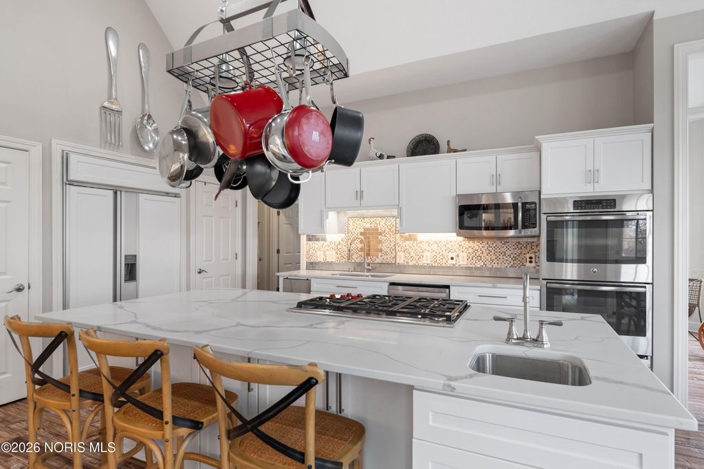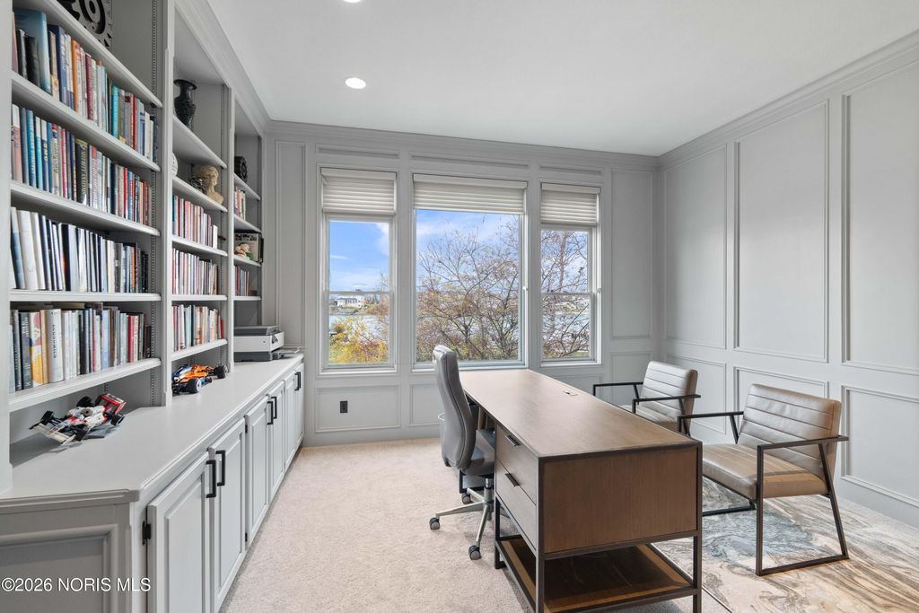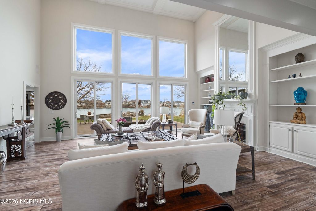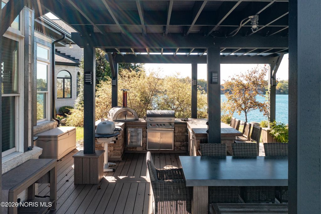 Experience LUXURY LIVING at its finest in this stunning WATERFRONT home in THE QUARRY, offering an exceptional blend of sophistication, comfort and breathtaking views! Upscale residence features FIVE bedrooms, SIX full and TWO half baths. Each bedroom is thoughtfully designed to provide privacy and elegance for family and guests alike. Soaring ceilings and expansive windows flood the home with natural light. The gourmet chef's kitchen boasts topof- the-line appliances, custom cabinetry, and a generous island perfect for entertaining. Lavish, main-level primary suite offers panoramic water views from the spa-like en-suite. Additional suite on the main level ideal for multi-generational living. Upper-level features 3 bedroom each with its own bath, media room, and large bonus room (possibly sixth bedroom). Finished lower level adds exceptional living space with two entertainment areas, fitness room, home theatre and full bath. Outside, enjoy resort-style living with multiple areas for entertainment, including a spacious deck with built-in kitchen, paver patio, green space and a private dock for water toys! With unmatched craftsmanship and an irresistible setting, this home offers the rare opportunity to live every day like you're on vacation!