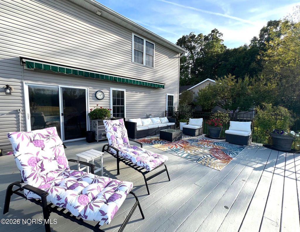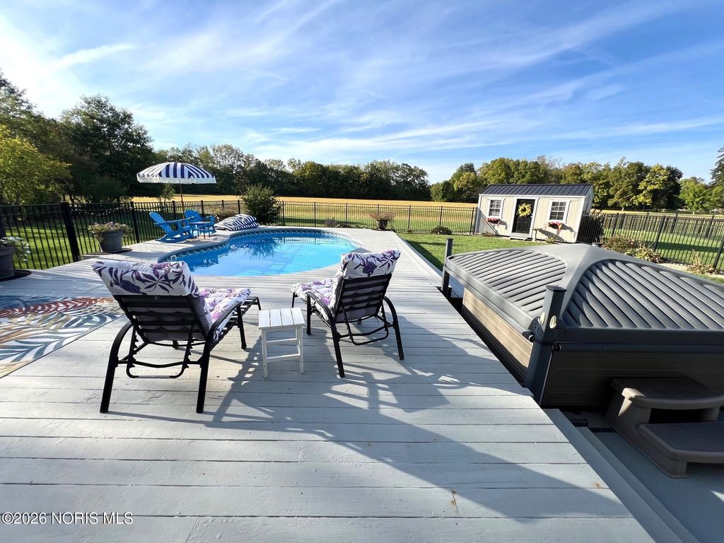 Welcome to this immaculate 4-bedroom, 2.5 bath home located in Rivers Edge subdivision. Featuring an open-concept layout, the heart of the home includes a spacious kitchen, dining nook and living room perfect for entertaining & everyday living. Enjoy the seamless flow from the dining area through the patio doors, leading to the back deck & a beautiful saltwater inground pool, ideal for relaxing or hosting guests. The fenced backyard also includes a storage shed. Concrete drive for added convenience. This home has it all, style with a backyard oasis. Do not miss your chance to own this gem.