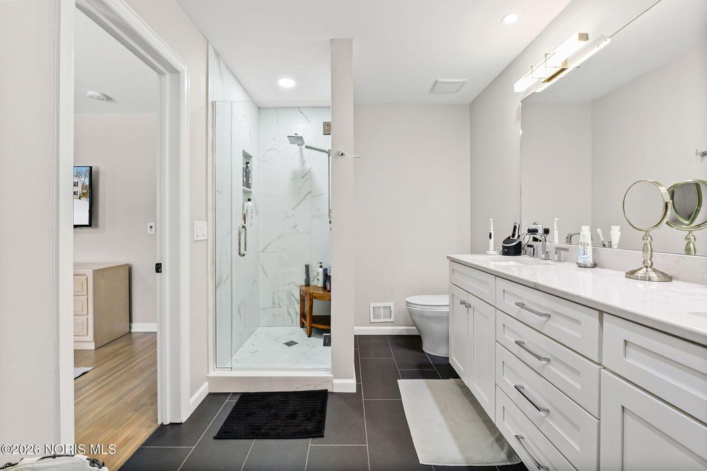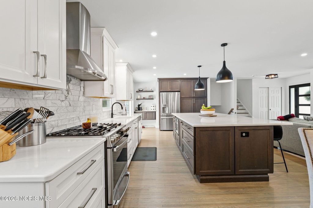 Over $150k in updates since 2023, solid wood doors, high end cabinetry in kitchen, pantry, custom island, breakfast bar, quartz countertops and island, custom closets, upgraded electrical, well landscaped and private rear yard, large primary walk-in closet and shower.