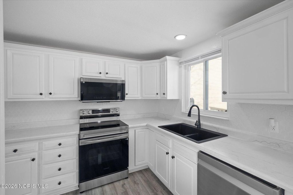 Move-in ready, fully remodeled 3-bedroom, 1.5-bath home. Features include fresh exterior and interior paint, new windows, completed landscaping, and an insulated crawl space with new insulation. Inside offers fresh interior paint throughout the house, new tile flooring, new carpet, updated lighting with LED fixtures, new electrical switches and outlets, some new interior doors, new door handles, new curtains on all windows and modern finishes throughout. Enjoy a cozy fireplace, accent wall in the living room, and a nice-sized back porch. The fully updated kitchen includes new cabinets, countertops, and stainless steel appliances such as refrigerator, stove, dishwasher, microwave. Both bathrooms are updated with new vanities and toilets.