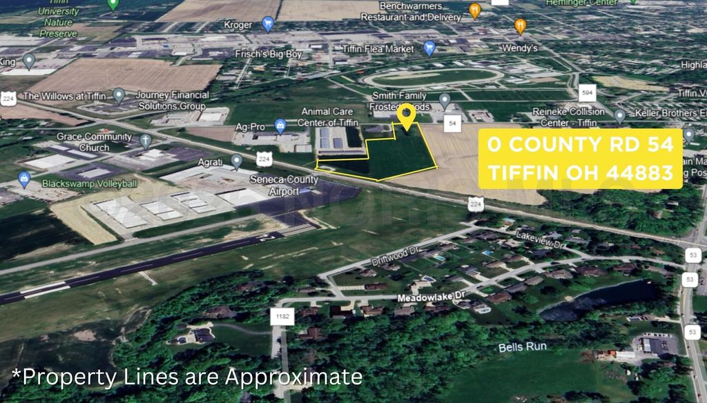 Prime Commercial Property with Excellent Visibility Discover 9.099 acres of prime commercial land with immense potential! The entrance is located next to the Animal Care Center of Tiffin, this expansive lot offers excellent visibility from the major thoroughfare West State Route 224. With convenient access to State Routes 53, US 224, & SR 18, and adjacent to the Seneca County Airport, this property is ideally positioned for businesses looking to grow and thrive. Additionally, it's near AG-PRO, the newer Mercy Hospital, and the Willows of Tiffin. With convenient access to all major utilities. The property can be sold as a whole or parceled/separated. Perfect for retail, office space, or mixed-use development, this versatile property is ready for your vision.
