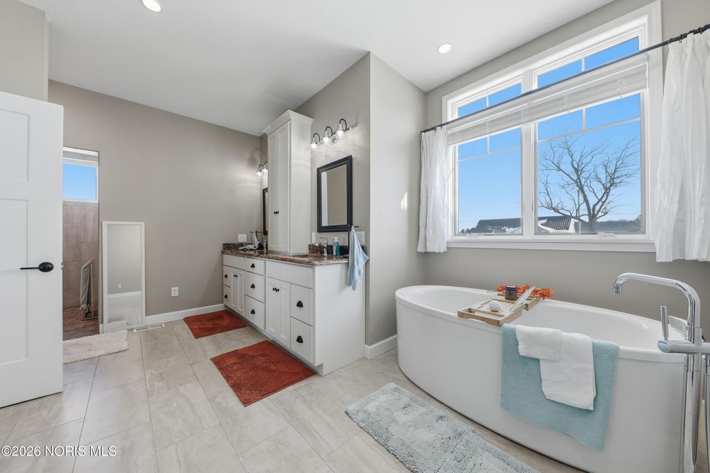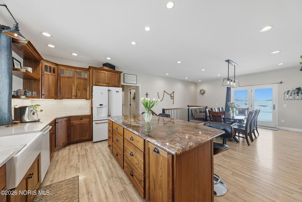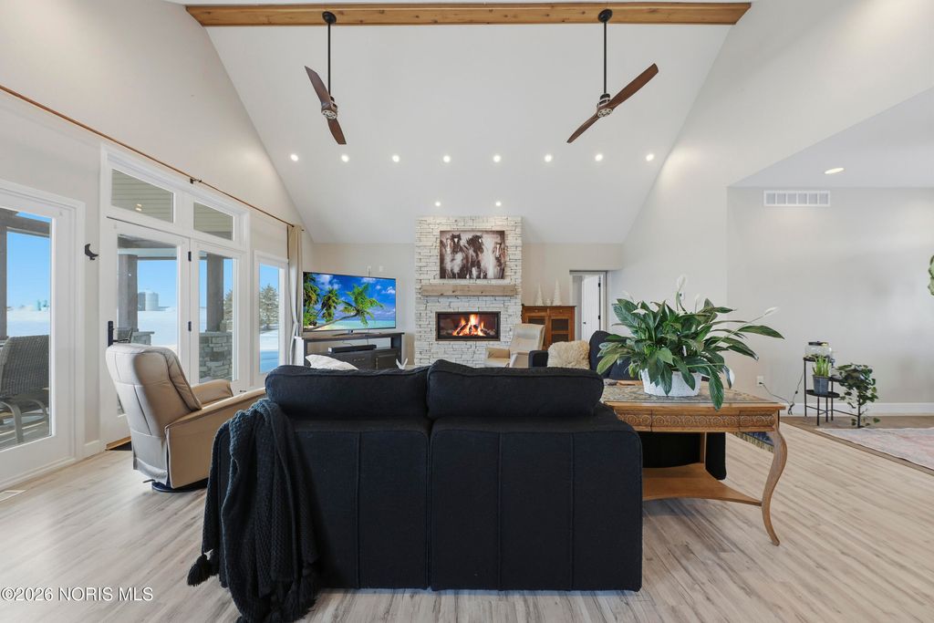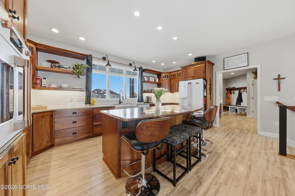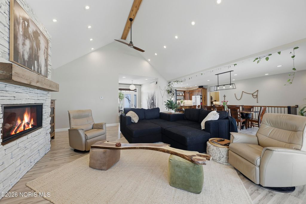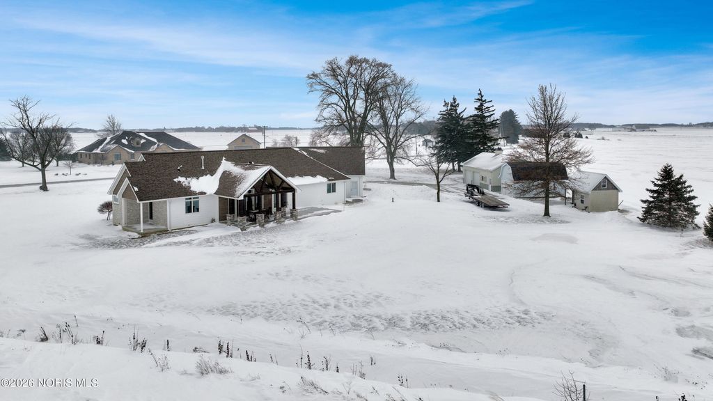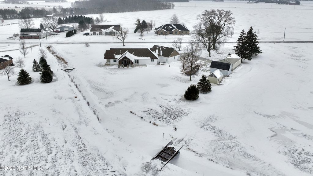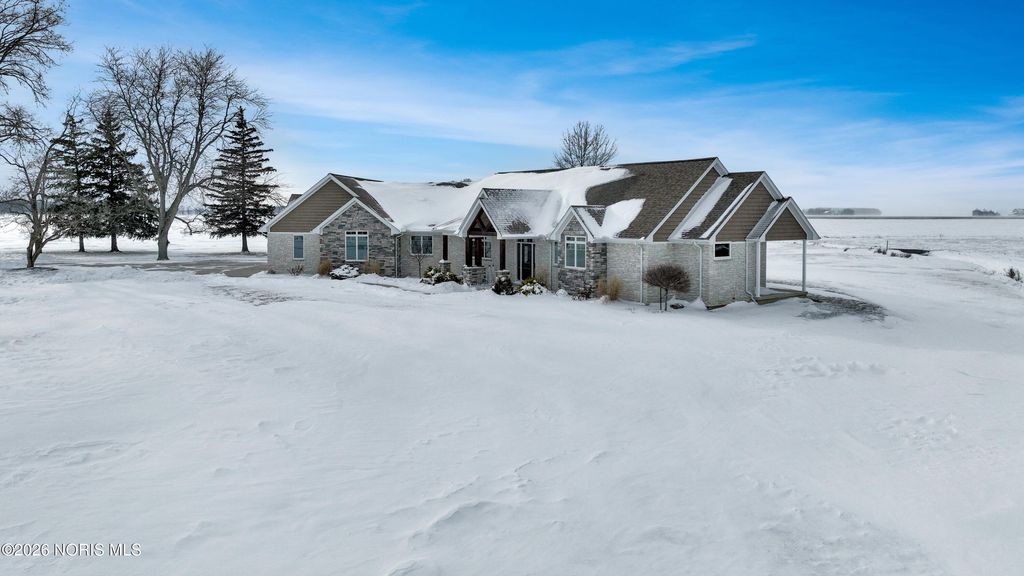 This custom-built single story ranch with a finished basement defines luxury living. The stunning great room flows into a chef's kitchen featuring Italian granite, custom cabinetry, and a walk-in pantry. The primary ensuite offers a spa like tiled shower, heated floors and a walk-in closet. The lower level includes a spacious rec area, extra bedroom, and full bath. Enjoy a covered patio, heated three-car garage with hot and cold water, and multiple outbuildings (heated shop 30x40) perfect for hobbies and storage.