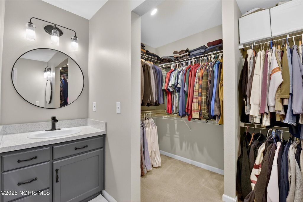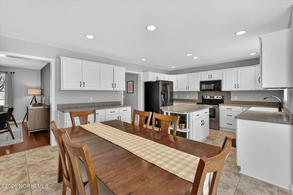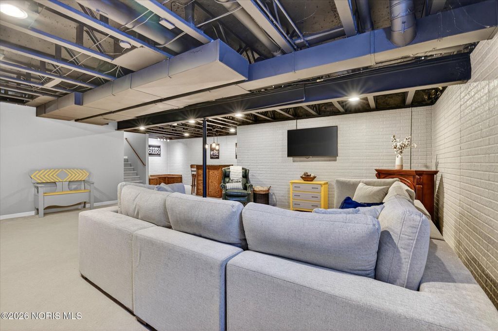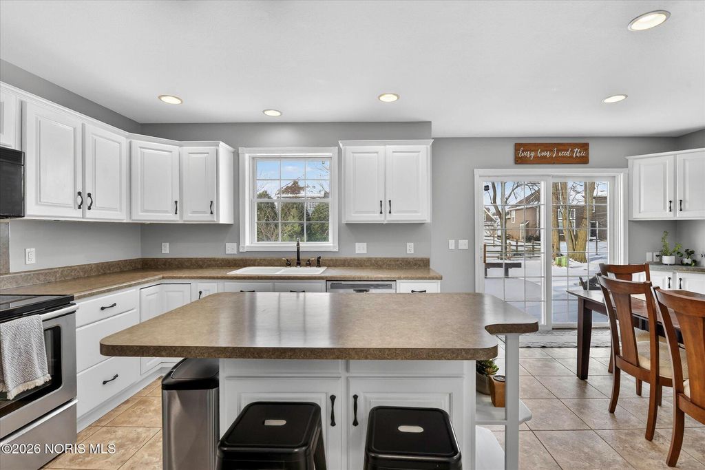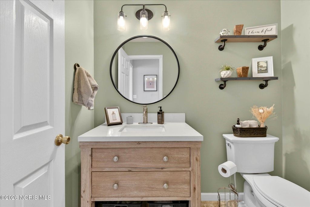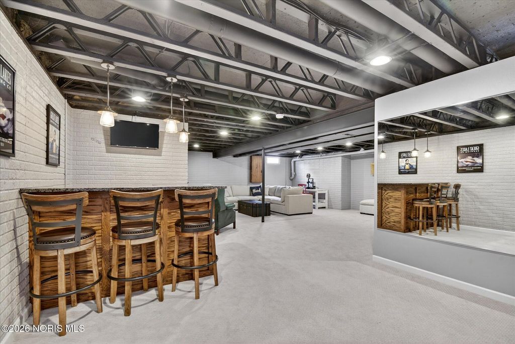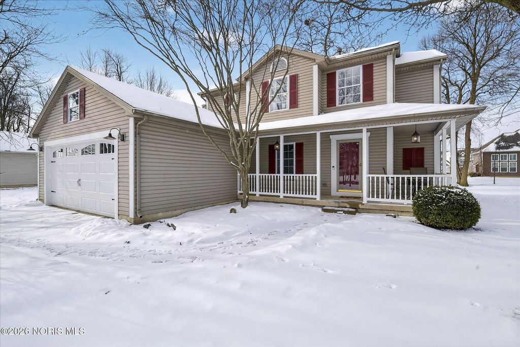 This distinctive Perrysburg home is nestled in an absolute beloved and quiet cul-de-sac. Three bedrooms all feature a private ensuite full bathroom and a walk-in closet. The design does not skimp on size, as the secondary bedrooms are notably larger than standard. A bright kitchen with a large island provides ample counter space, extra seating and is open to the dining area and living room that features a floor to ceiling stone fireplace. Updated modern half bath and laundry room are situated off the kitchen. The main floor also features a charming reading or sitting room. What will feel like unlimited space in the finished modern basement features a built-in dry bar with granite counter tops, beverage fridge, built-in wooden seating and shelving. Abundant open space for your own movies, games, etc. The mechanical room provides extra storage and workbench. A large two-tiered deck, backyard patio and firepit is an outdoor oasis surrounded by mature trees and ample summer shade. The ultimate bonus is a finished and insulated gas heated garage, extra deep for generous storage and a pedestrian door to the yard. All this in close proximity to schools, parks and Levis Commons. No HOA! Updates include HVAC '24, finished garage with 50,000 BTU gas heater, new modern insulated garage door, over 750 sq/ft of finished basement space, new 1st floor carpet, new electrical and lightning upgrades, 30 AMP EV charging, Owens Corning roof w/ transferable warranty '16.