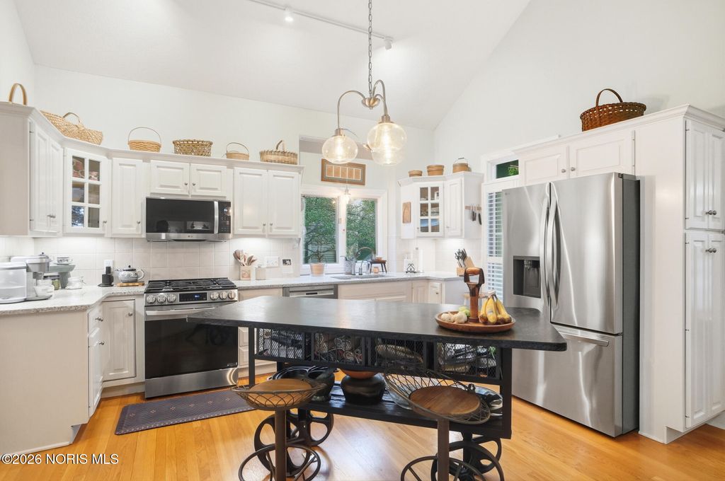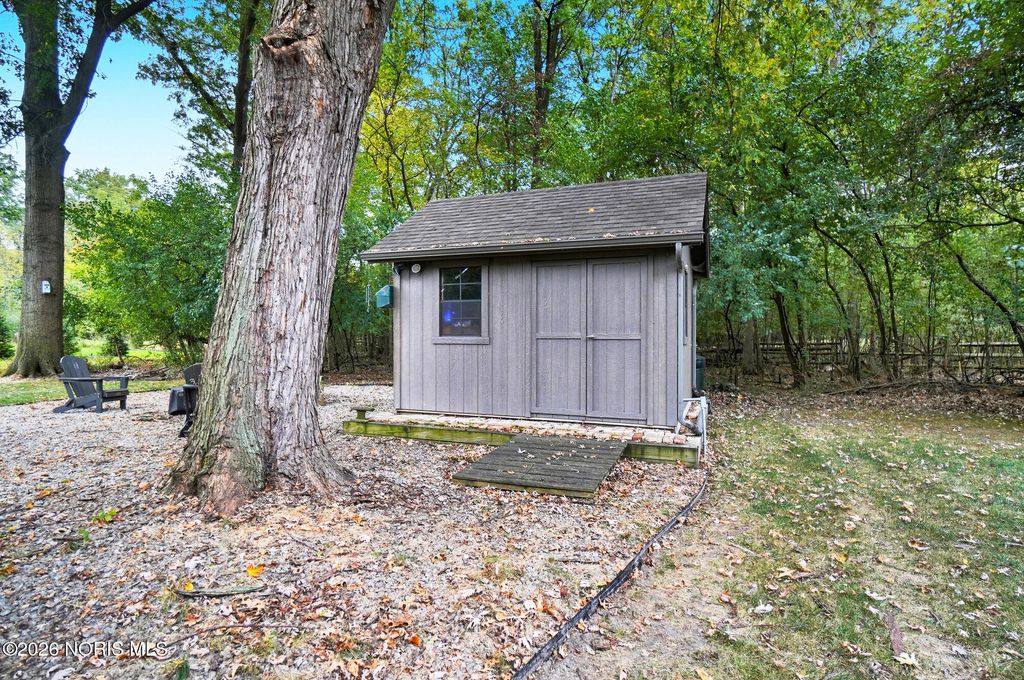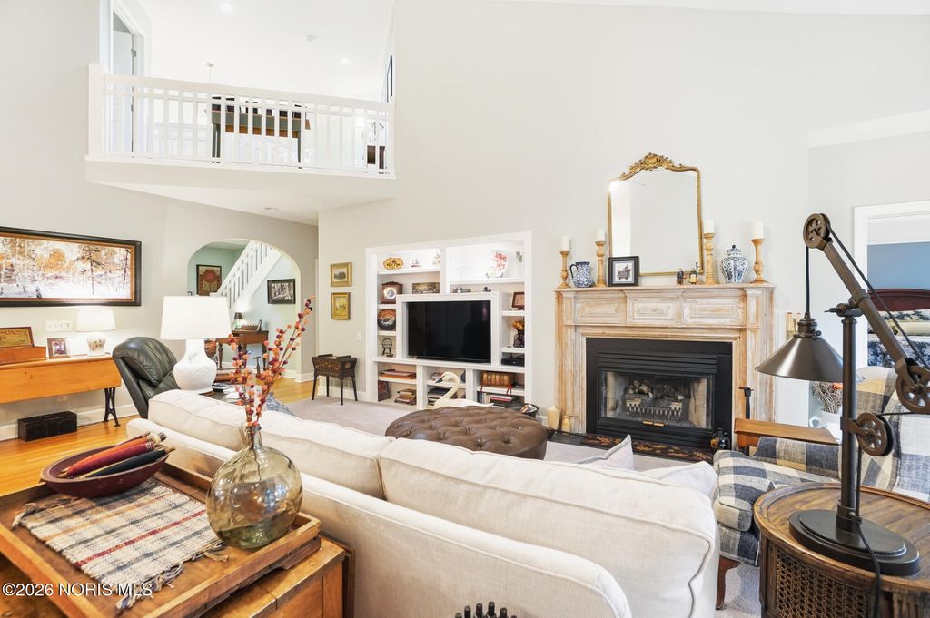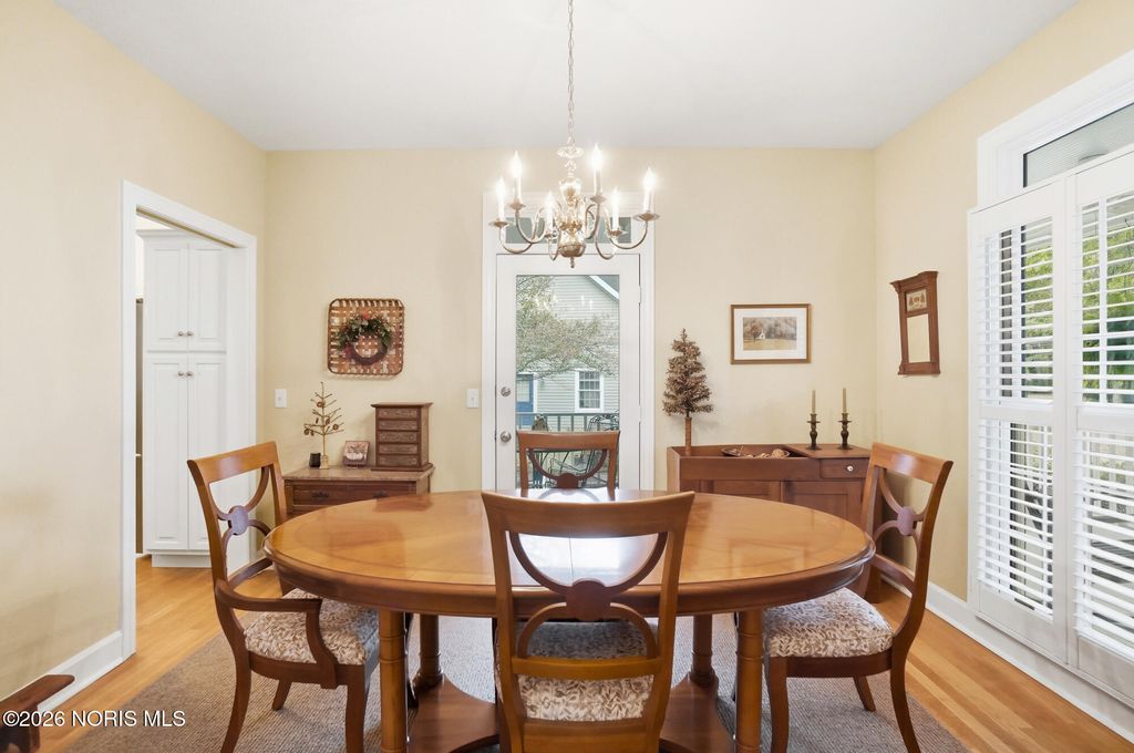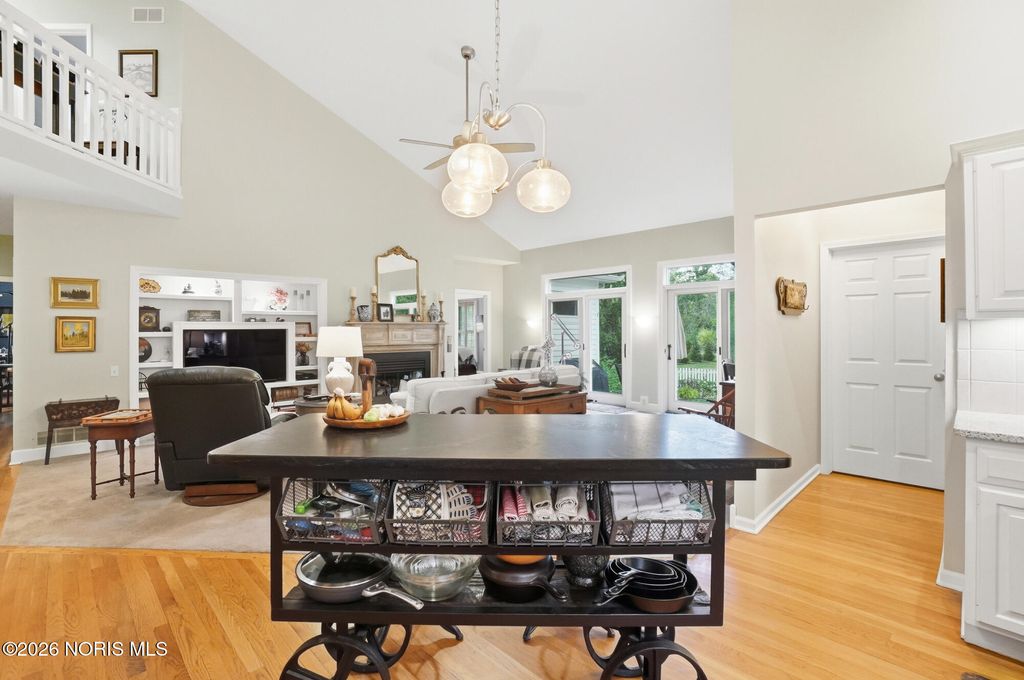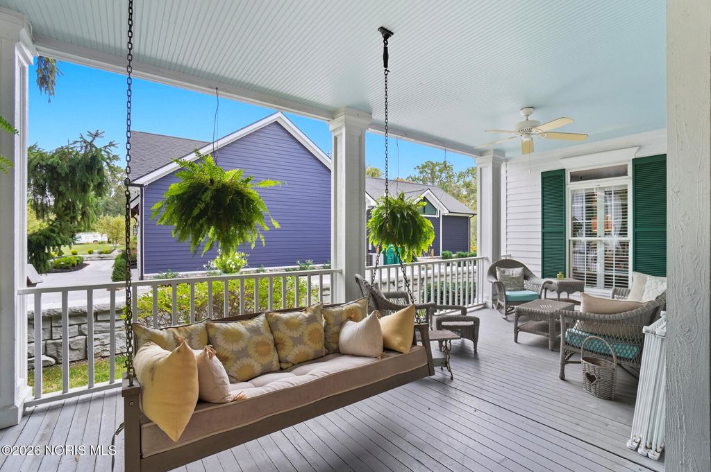 One of a kind Southern colonial featuring a welcoming wrap-around front porch, perfect for morning coffee, and lazy evenings. Inside, enjoy hardwood floors, high ceilings, and timeless character at every turn. A beautiful vaulted foyer, hardwood staircase and dining room with access to the wrap-around porch greet you as you enter the front door. The open great room and kitchen feature soaring ceilings and a gas fireplace with a wood mantle dating back to 1792. French doors lead to the backyard, featuring a deck, a fenced garden area surrounded by mature landscaping, a fire pit, and a shed. Beyond, a wooded bck lot offer privacy and a natural setting where wildlife is frequently seen. The first floor primary suite is filled with natural light from the gorgeous windows overlooking the private yard. The primary bedroom also features a tray ceiling, hardwood floors, a walk-in closet, and an updated bathroom. A second first floor bedroom or optional den has hardwood, built-ins, and an adjacent full bathroom. There is a huge basement which provides endless storage or future living space. This home is rich in charm, thoughtfully designed and truly one of a kind. Upstaris offers two additional bedrooms and a Jack and Jill bathroom