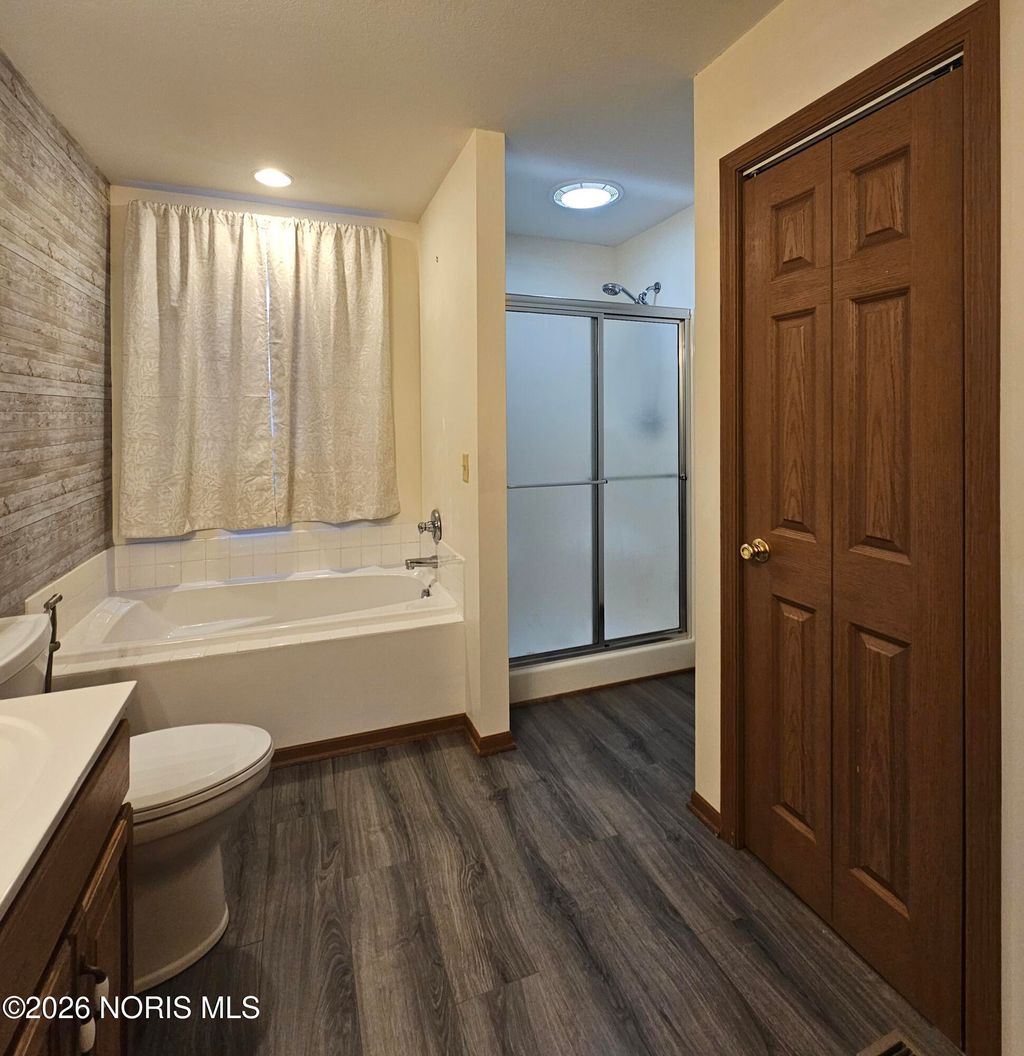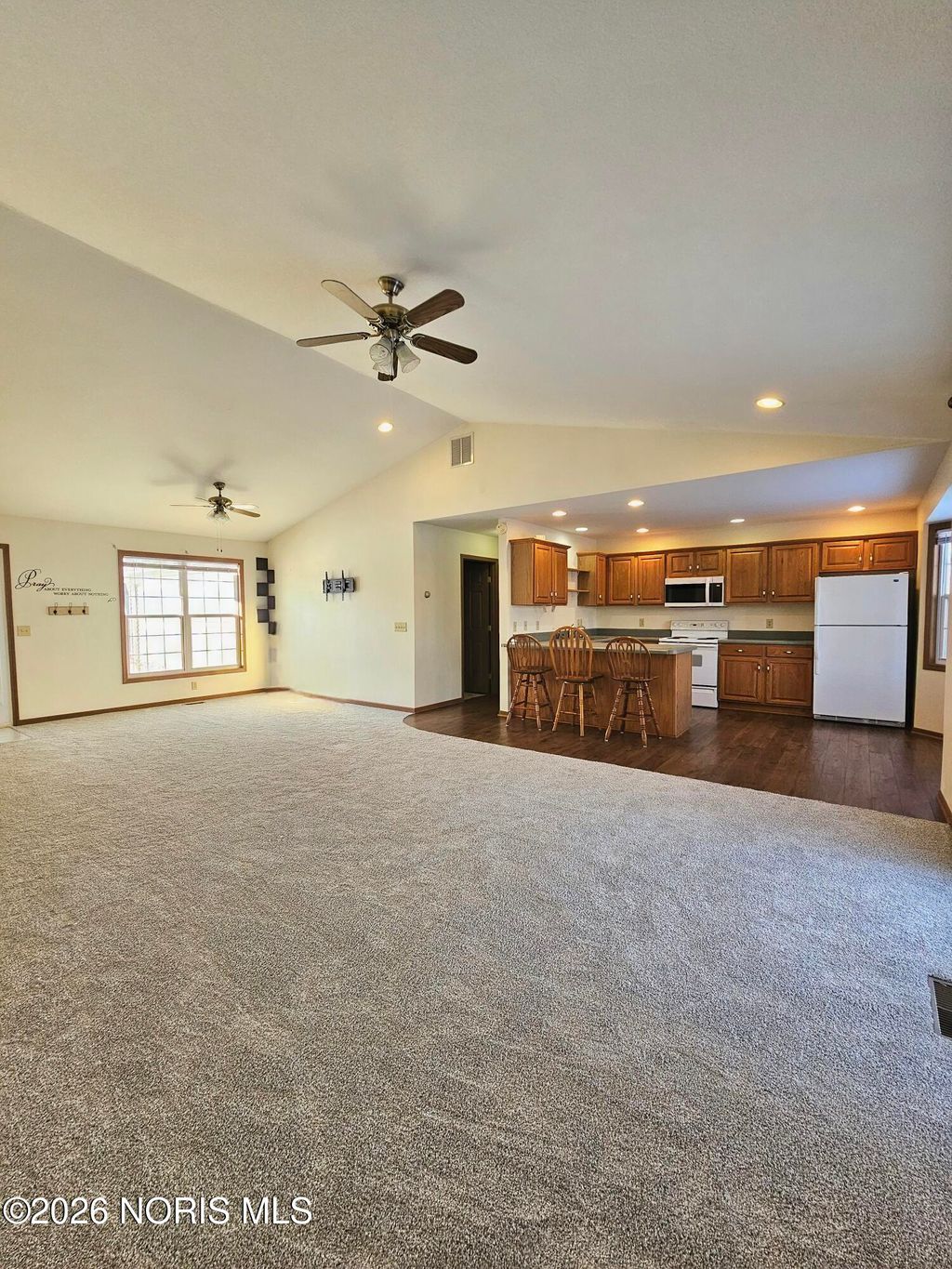 Welcome home to this move in ready 3 bedroom, 2 bath residence offering 1,492 square feet of thoughtfully designed living space. The open concept layout is ideal for both everyday living and entertaining, featuring new carpet, a cozy gas fireplace, and abundant natural light. The primary suite includes a whirlpool tub, separate shower, and double vanity for a private retreat. Additional highlights include main floor laundry, central heating and cooling with a new HVAC system, ample storage and pantry space, and a two car attached garage. Enjoy the private backyard complete with a deck and vinyl picket fence. This well maintained home offers comfort and functionality, ready to welcome its next owner.
