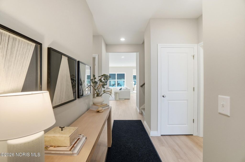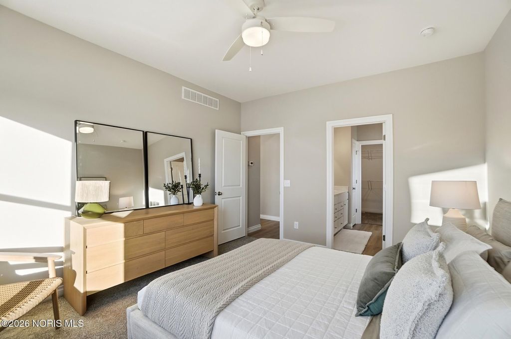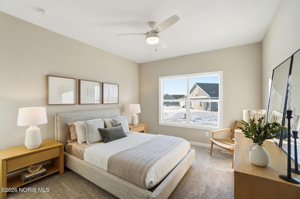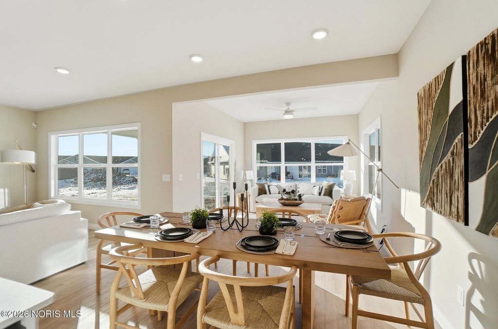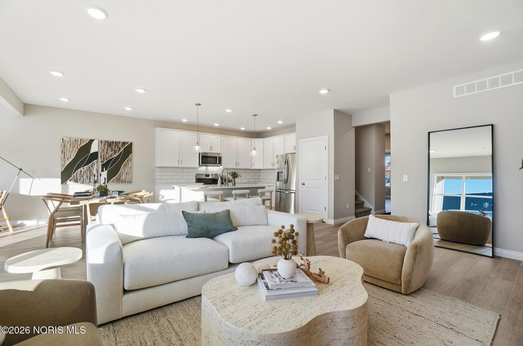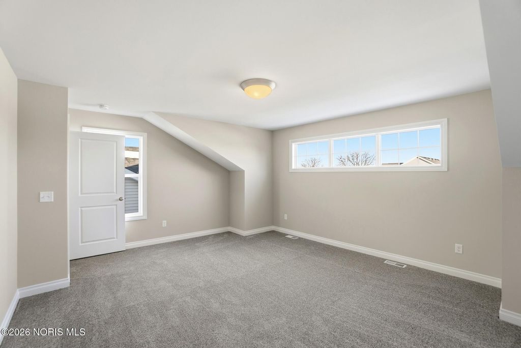 MODEL HOME by MR DEVELOPERS at THE FALLS AT RIVERS EDGE. Price shown based on Builder's upgraded features, including lot. This home is NOT for sale. The Villa features an open great room floor plan with 9' ceilings throughout the home. Shaker-style cabinets, quartz countertops, attractive luxury vinyl plank flooring, a bright sunroom, and a covered rear porch. Enjoy a spacious primary bedroom with an ensuite bath and large walk-in closet, an upper-level loft with a closet that could be used as a 3rd bedroom that walks into floored attic storage space, a main floor laundry, and a 2-car garage. HOA maintains lawn & snow for low maintenance lifestyle and also includes access to a clubhouse and outdoor pool.