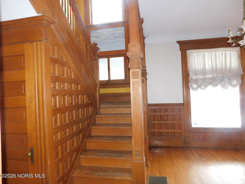 Historic District home in the Old West End with wrap around porch. This 3624 plus sqft home features beautiful natural wood decor including hardwood floors, pocket doors, stair case, and more. Call today to see the circular floor plan. Additional living spave on the finished 3rd floor. Call today.