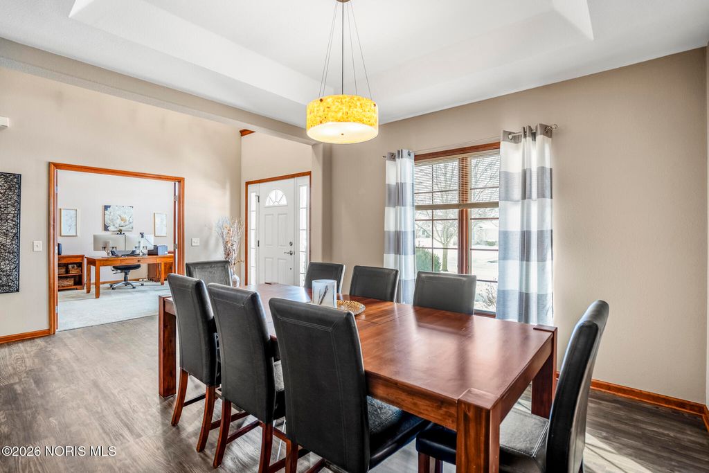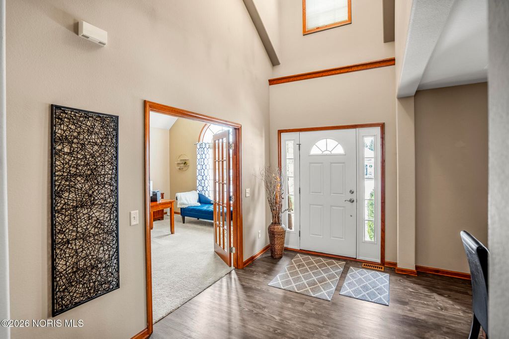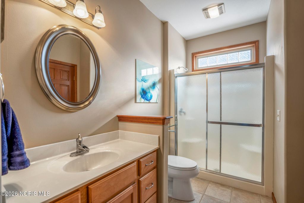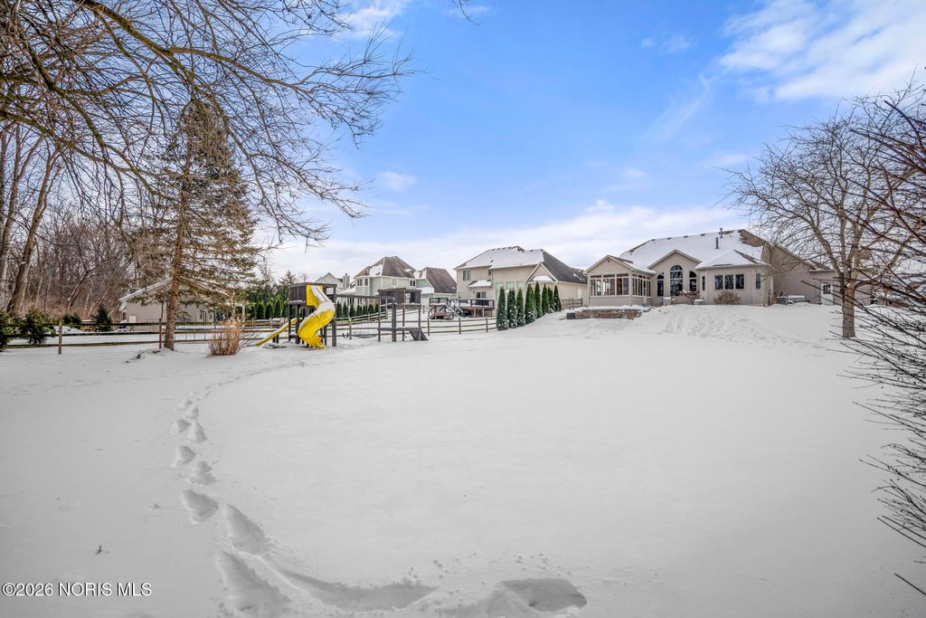 This bright, open-concept home features vaulted ceilings and large windows that fill the space with natural light. The main level includes a generous primary suite for easy living, plus a flexible second bedroom that can serve as an additional office or guest room. Adjacent to the eat-in kitchen, the three-season room overlooks the private lot "” a peaceful, secluded outdoor space with mature trees and an accessible creek, providing natural screening and tranquility. It opens to a stamped concrete patio, ideal for relaxation, entertaining, or enjoying quiet evenings. The exceptionally spacious finished basement offers 9-foot ceilings, a full bar, and a half bath"”great for entertaining, hobbies, or extra living space. Recent updates include a brand-new furnace and AC for reliable comfort and efficiency. Additional conveniences include a three car attached garage with ample room for vehicles plus storage, in addition to a full walk-in attic above for more storage. Practical layout with generous indoor space and a highly desirable private lot outside. Schedule a showing to experience it firsthand.