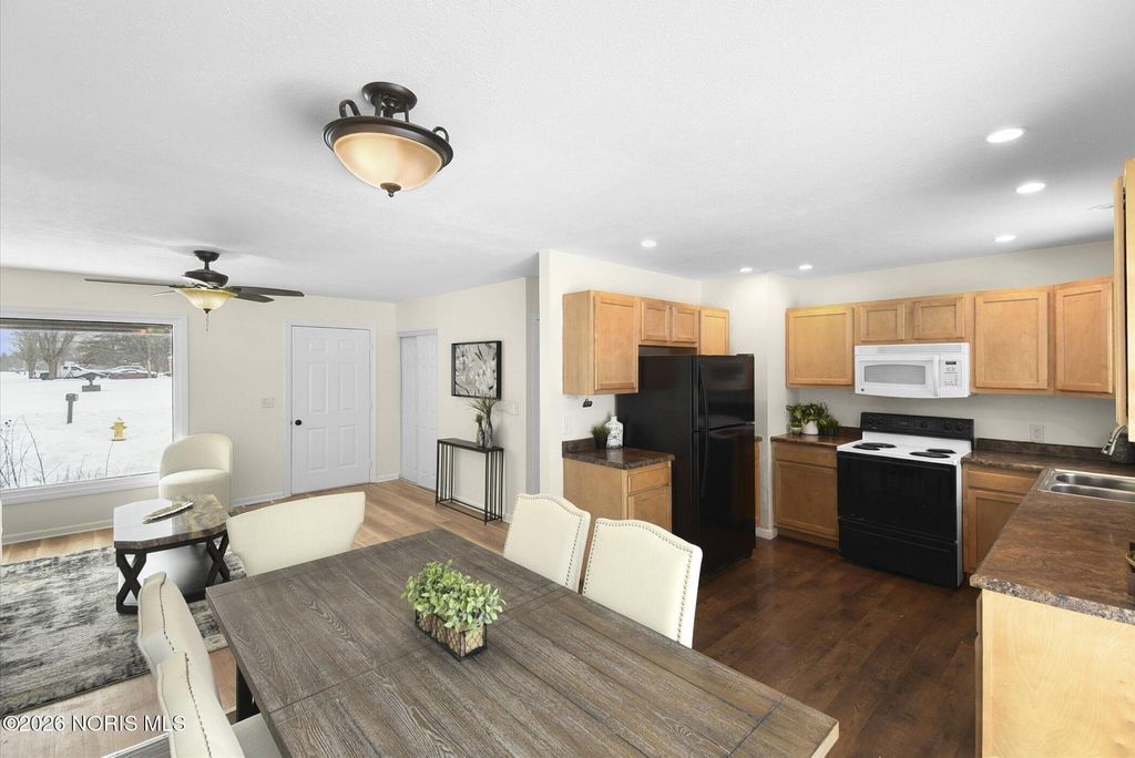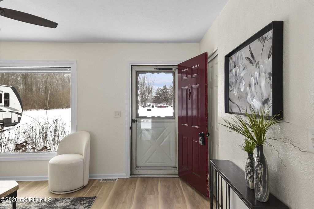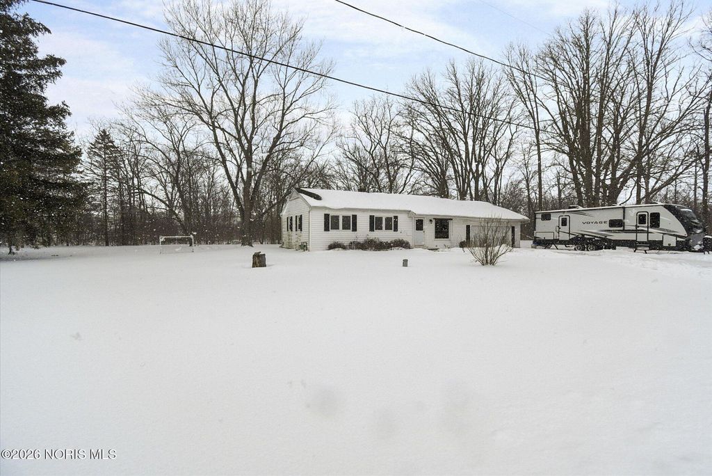 This well-maintained home features fresh interior paint and new luxury vinyl flooring throughout, offering a modern, move-in-ready feel. The full basement provides ample storage and flexible space for future use. The large backyard is private and surrounded by mature trees, and includes a shed for additional storage or outdoor equipment. Situated on a lovely lot, the property offers a quiet country setting while still benefiting from city utilities. This is an excellent opportunity for buyers seeking comfort, space, and convenience just outside city limits. Lake schools!