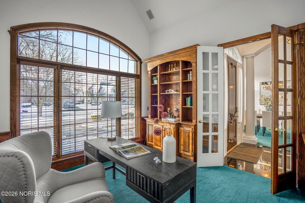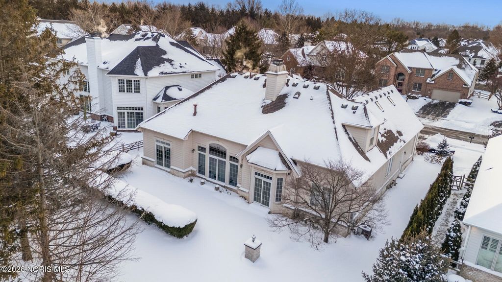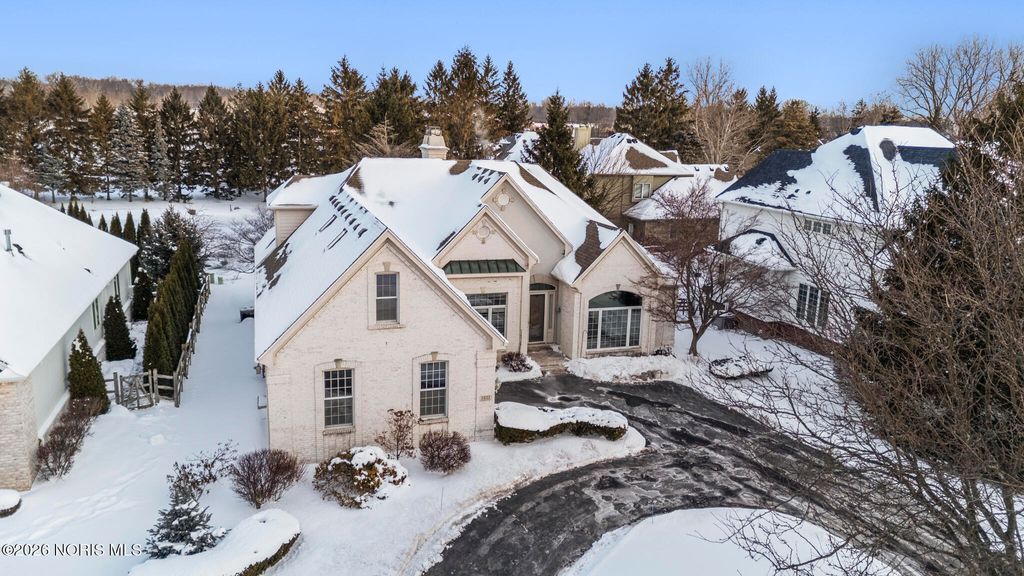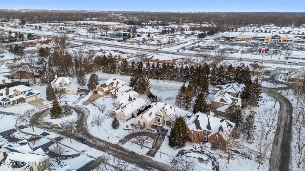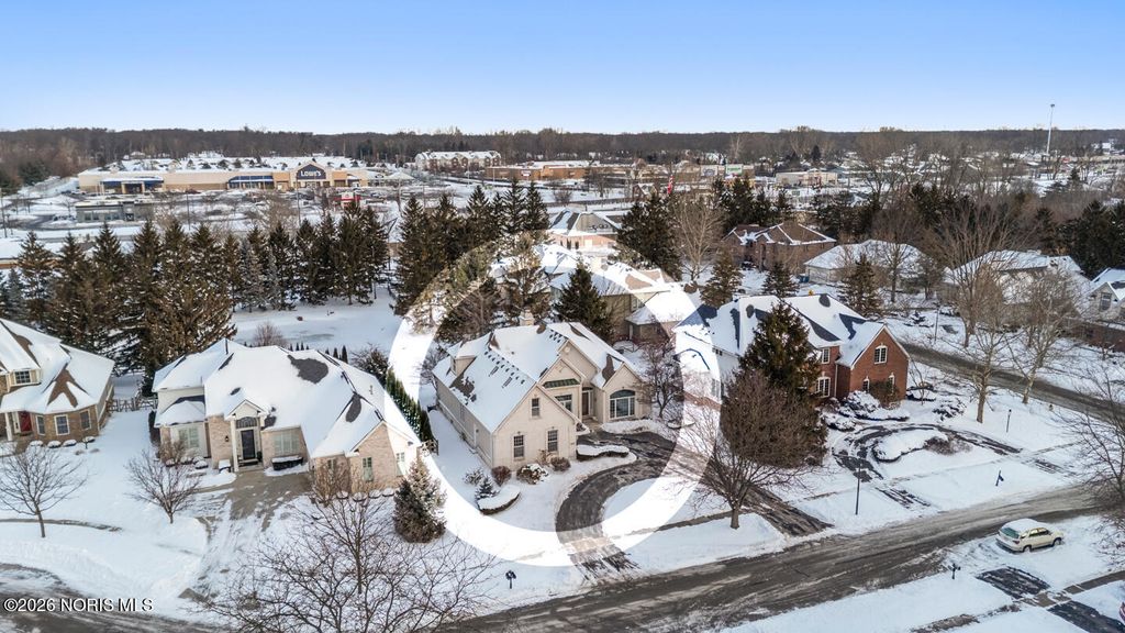 Sylvania stunner: you'd never know this beauty was tucked in the neighborhood! On a cul-de-sac with a circular drive and attached garage, you'll find massive space inside. Enter the tiled foyer with an office to your right and dining room to your left. But you'll be taken in by the high ceilings and wall of windows in the great room, complete with fireplace and built ins. The kitchen stretches the home with an eat-in space with lovely views of and access to the backyard, patio, and shared pond! The primary suite also has backyard views and a never-ending bathroom complete with separate walk-in shower and jacuzzi tub. Two bedrooms, a full bath, and laundry room complete the main floor. You'll find a fabulous bonus space upstairs with a full bath and a room or two for whatever needs you have! The basement is perfect for storage! Soaring ceilings, great space, awesome location, and a serene view wait for you here!