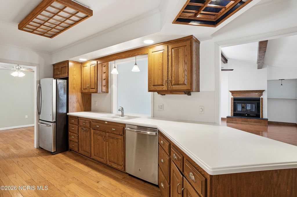 Fantastic 2 story with vaulted great room addition, partially finished basement, updated primary bath, and more. Formal LR. Formal DR. Family/great room with fireplace. Rec room in basement. Nice farmhouse-style eat-in kitchen with stainless steel appliances. Shed in spacious backyard. Major repairs to basement recently completed. Roof/trim/wall/other repairs all completed - bid available for review. An outstanding in-town Perrysburg location on quiet side street. Super layout. Large rooms. Great value/buy!