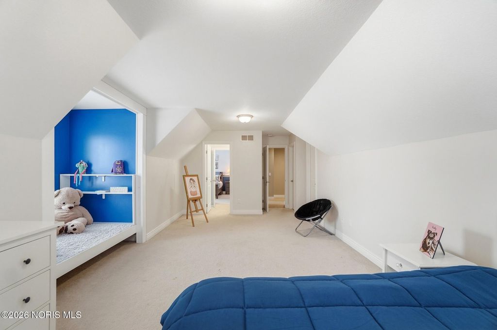 Amazing home w/ all the space a family could want. The primary suite features a Vaulted ceiling and large windows, while 3 additional spacious bedrooms, 2 full baths, and a versatile loft offers flexibility for a potential 5th bedroom. The beautiful kitchen flows seamlessly into the great room, highlighted by quality cabinetry,cathedral ceiling, large windows,fireplace, snack bar, and a generous eat-in area overlooking the large backyard. Step outside to the covered patio w/ built-in grill & fire pit-perfect for entertaining. A huge, professionally finished basement completes the home w/ half bath and beautiful quartz bar.