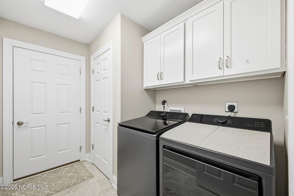 Welcome to this beautifully maintained newer construction condo in Kettering Hills River Crossing community. Step inside to an open-concept layout filled with natural light, featuring vaulted ceilings and large windows that create a bright, airy feel throughout. Relax in the sunroom/family room with sliding doors out to the back deck. The kitchen is both stylish and functional, showcasing sleek tile flooring, a striking black backsplash, and thoughtful upgrades including pull-out cabinet trays and a built-in garbage- perfect for everyday convenience. This home continues to impress with numerous enhancements such as updated lighting in the bedroom, elegant shower door, added garage storage, and laundry cabinetry for extra organization. Every detail has been carefully considered to blend comfort, functionality, and modern design. Enjoy low-maintenance living, all while feeling right at home in this inviting, move-in-ready space.