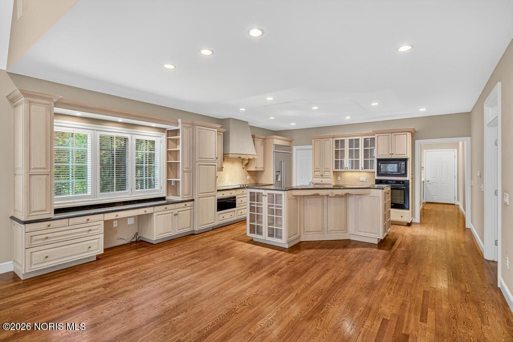 Custom full-brick Country French design built by McGowan w/ landscaping by Nil Gallagher. Open plan w/soaring ceilings and expansive rooms lead to rear bluestone terrace w/canopy perfect for gatherings. Granite island kitchen ideal for entertaining. Main level primary suite w/walk-ins, tiled bath creates a private retreat. 2 en-suite bedrooms up w/loft. Finished bsmt adds a full bath & bedroom + flex living space for family/guests. Rich hardwood floors, mahogany bookshelves, wet bar, wine cellar bring timeless character. Enjoy Ottawa Hills Schools + nearby Wildwood Metropark, shopping, dining.