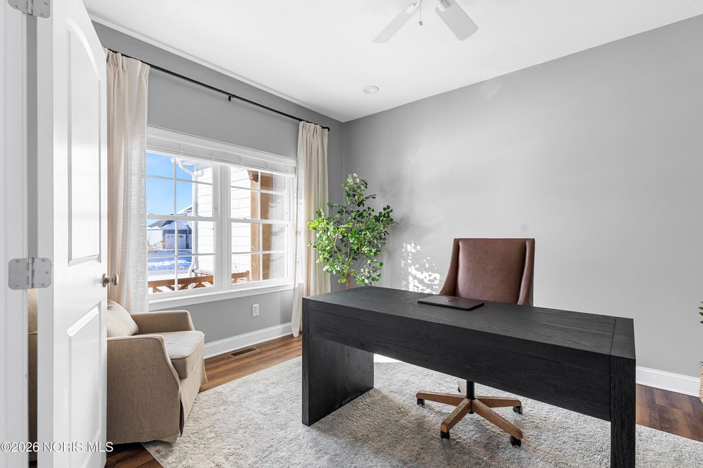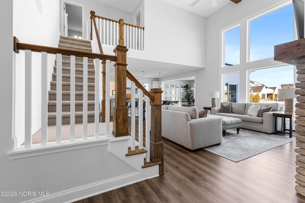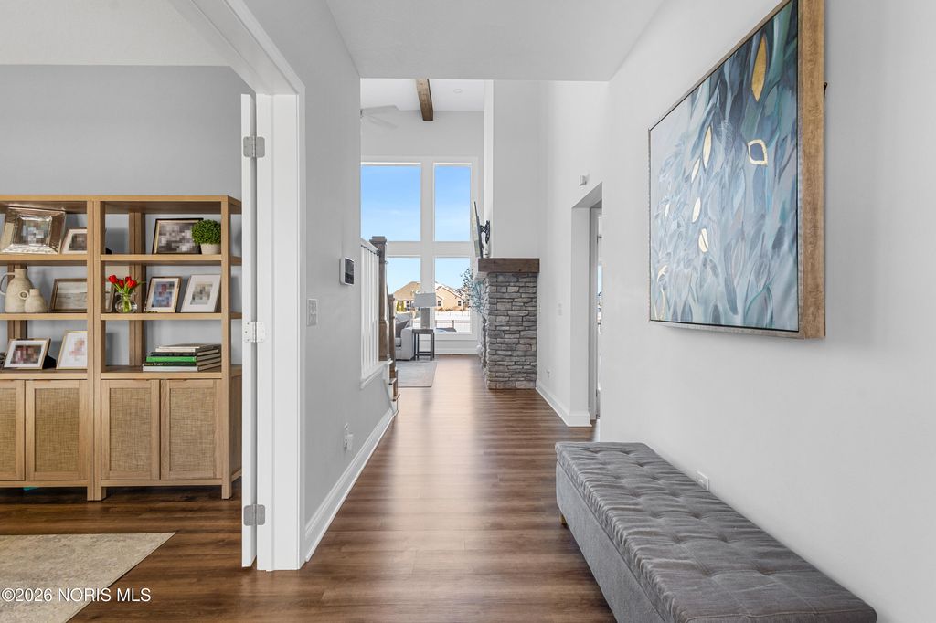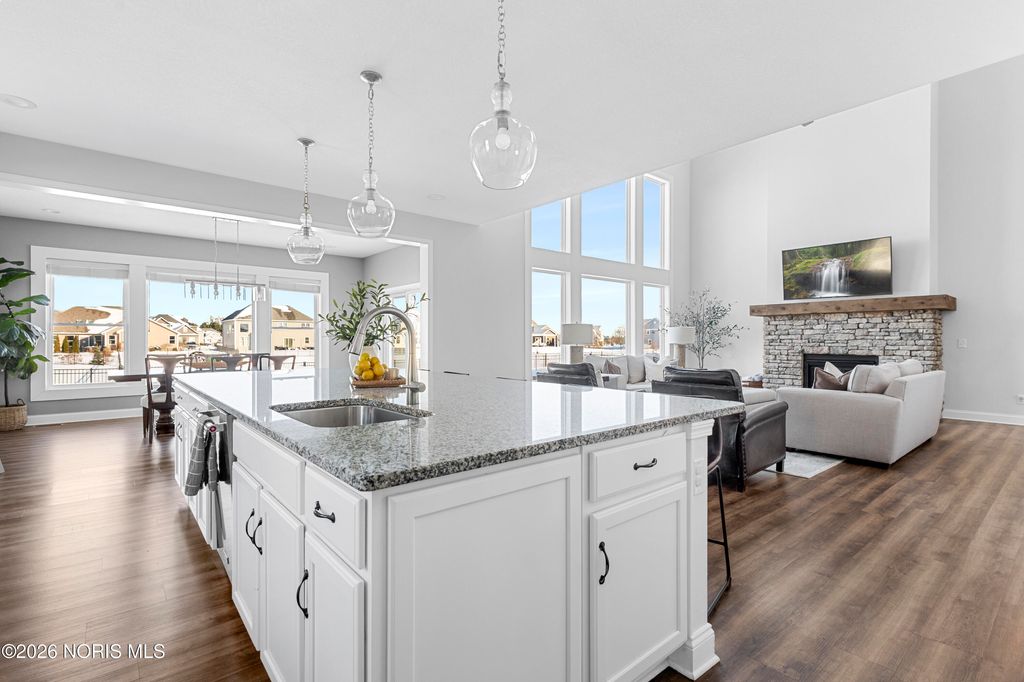 Bright - Open - Airy! Wonderfully located on a quiet Cul-De-Sac in the newly developed Brookside Subdivision. Tremendously crafted with a lovely blend of modern convenience and function. 2-sty great room w/ soaring ceilings, stone surround fireplace, nearly floor to ceiling windows all opening to an expansive island kitchen. Kitchenaid appliance package, granite stone counters w/tiled backsplash, soft close doors and drawers, loads of cabinet and storage plus walk in pantry. Dining area flows off the kitchen - great for entertaining. Spacious main level primary w/separate tub and shower and walk in closet. Dedicated office on the main level off the entry adds to the function. Second level boasts three generous bedrooms and full bathroom. Make your way downstairs to the newly finished custom lower level. Over 1,000+square feet of additional living space, w/bar area, half bath, exercise room and potentially a lower level office, or additional flex space. Large fenced in backyard and concrete patio with views of the pond add to the enjoyment. Here's your chance to purchase like new construction w/custom finished lower level.