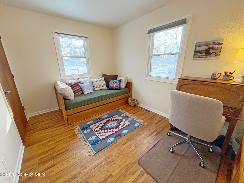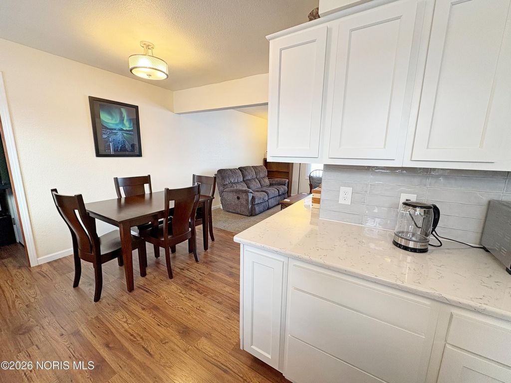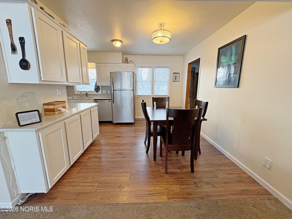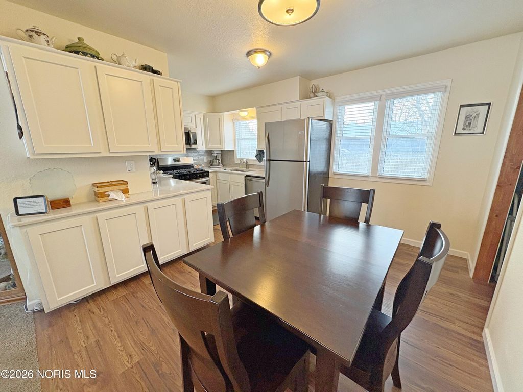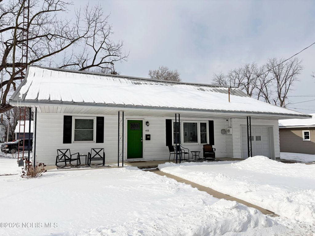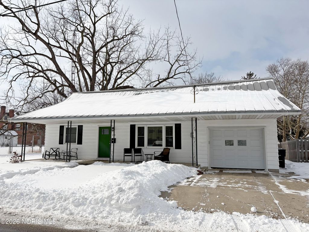 Wonderfully updated 4 bedroom BG Cape Cod! BIG and welcoming covered front porch leads to a spacious Living Room. Total kitchen renovation (2021) features new cabinetry, quartz countertops, stainless steel appliances & ample dining space. 2 first floor bedrooms featuring hardwood floors, plus a fully remodeled full bath. Primary Bedroom with double closets leads to bonus den/nursery. 4th bedroom and another remodeled full bathroom (2021) complete the upper level. Convenient first floor Mudroom entry with washer/dryer. Attached 1.5 car garage with additional driveway parking. Super manageable yard with rear privacy fence. Ideal central BG location in close proximity to BGSU campus & downtown amenities / events. New water heater & water meter (2025), Front Door & garage door opener, new furnace & AC (2021). See MLS attachments for a full list of improvements. Possession at closing!