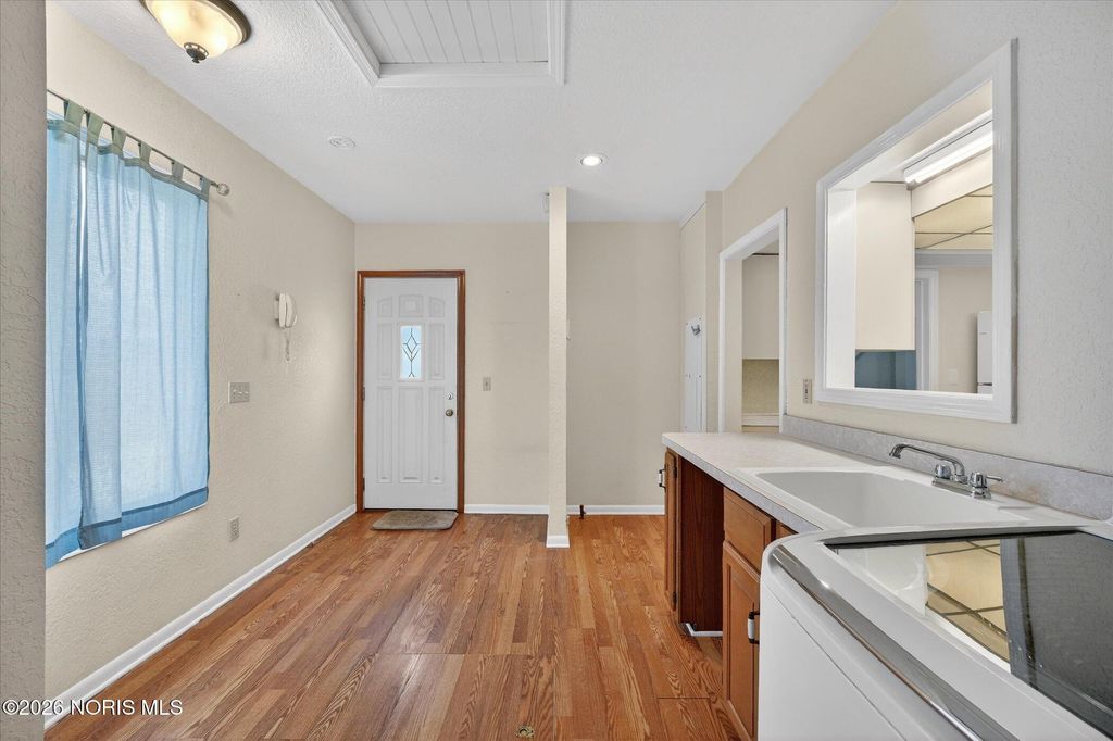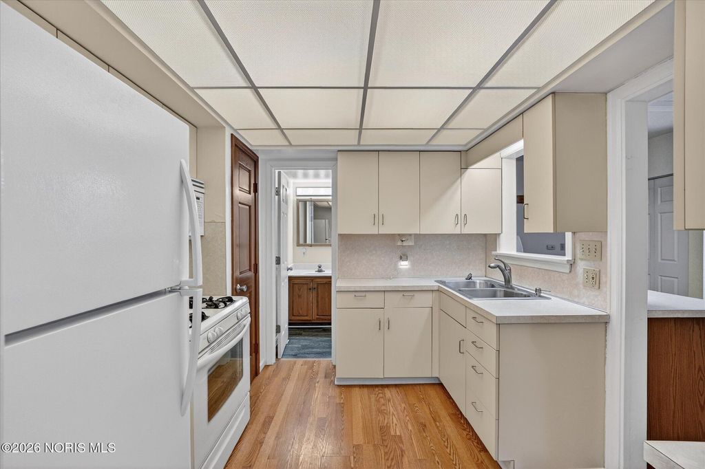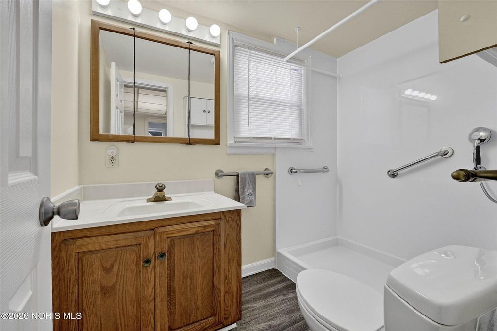 Adorable bungalow now available! This 2 bed, 1 bathroom home offers a new roof in July 24', spacious yard, detached DREAM garage, and shed for storage. The spacious first floor laundry room offers lots of natural light. The newer vinyl flooring in the living room, dining room, and first floor bedroom offer ease of living and cleaning. The first floor has been freshly painted! The full bathroom has a new walk in shower installed in 23'. The detached garage is 31x23 offering the perfect space for all of your hobbies. This is your dream man cave, tinkers' garage, or workspace you have been dreaming of! With cabinets, electricity, heating, cooling and a tv already included! In the warmer weather, enjoy the lovely yard which is mostly fenced. Extra storage available in the large shed with overhead door. This one is ready and waiting for you!