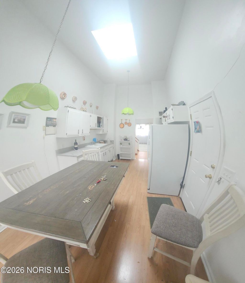 This home feels much larger than it looks. Large bright rooms on the main floor with soaring ceilings. Four Bedrooms on three different floors which make them feel more private than everyone packed together. Primary Bedroom has a small deck overlooking back yards, double closets and it's own access to one of the full baths that features a skylight. Three full baths on Three floors total. Nice deck off the Kitchen gives you nice outdoor access during the warm months. Large attached garage so you don't have to get in your car outside in inclement weather. Home being sold to settle estate. Could use some updating, easy to see!