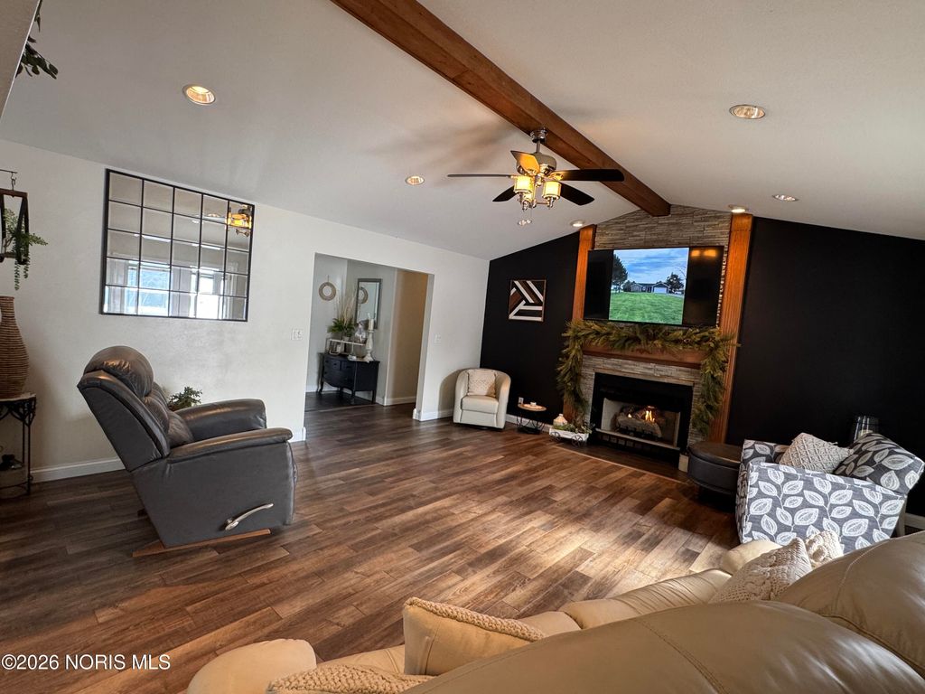 COUNTRY LIVING ON THE EDGE OF TOWN WITH 1.47 AC. ALL THE TOWN AMENITIES WITH YOUR OWN PRIVACY! METICULOUS RANCH W/QUARTZ EAT IN TILED KITCHEN, NEW ROOF '24, HVAC '19, NEWER FLOORING THROUGH OUT, NEWER KITCHEN AND BATHS, ELECTRICAL, LIGHTING, TOO MUCH TO LIST! TONS OF NATURAL LIGHT, FIREPLACE IN YOUR VAULTED CEILING LIVING ROOM! OUTSIDE BOASTS A LARGE LOT WITH A 24X24 POLE BARN W/CONCRETE AND ELECTRIC! CONCRETE PATIO W/NEW HOT TUB, PRIVATE FIRE PIT FOR RELAXING AT NIGHT! THIS HOME IS EV READY W/EXTERIOR MOUNTED LEVEL 2 CHARGING STATION! COME SEE WHAT THIS VIBRANT TOWN HAS TO OFFER YOU! YOU WONT BE DISAPPOINTED!