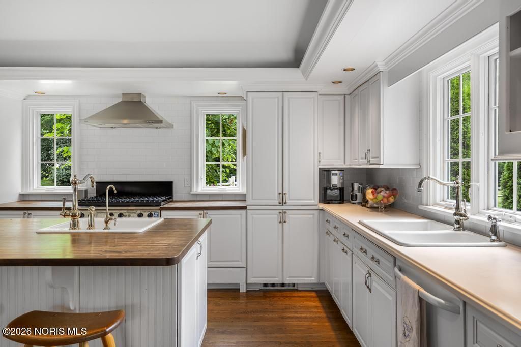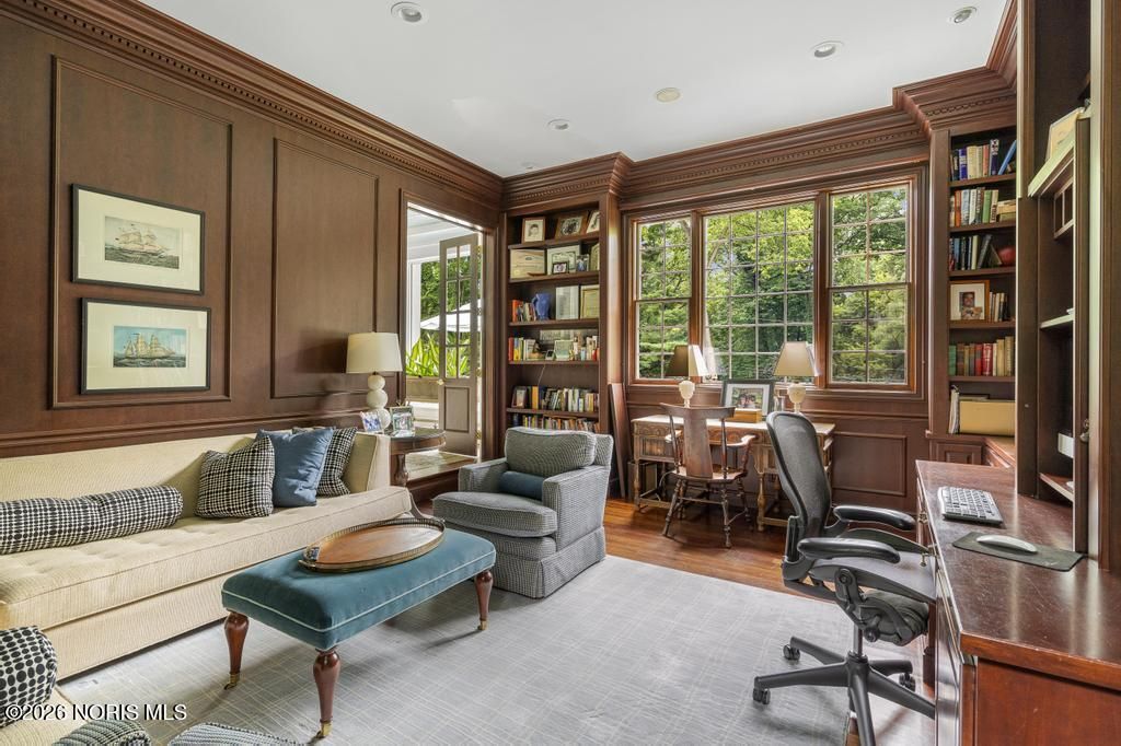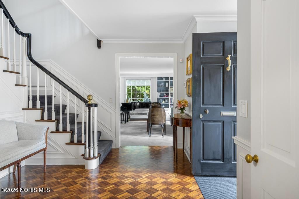 One of the Signature Homes In Ottawa Hills. The open foyer and winding staircase lead you to this cozy comfortable home, with many upgrades. Living room features WB fireplace, stunning built-ins and parquet floor. Bright happy family room overlooks Pool and Patio with built in kitchen space. Wood paneled library with built-ins & workspace for the computer. Formal dining area has crown molding & fireplace. Island kitchen offers eat-in space, gas cooktop, French door pantries, prep & bar sinks, fridge & freezer are oversized. Pre and bar sinks, a true entertaining space. Primary bedroom is vaulted, hardwood, balcony overlooks grounds. Bathroom offers sitting area, soaking tub, decorative FP & showstopping walk in closet with many built-in options. Brand new Primary shower and laundry.