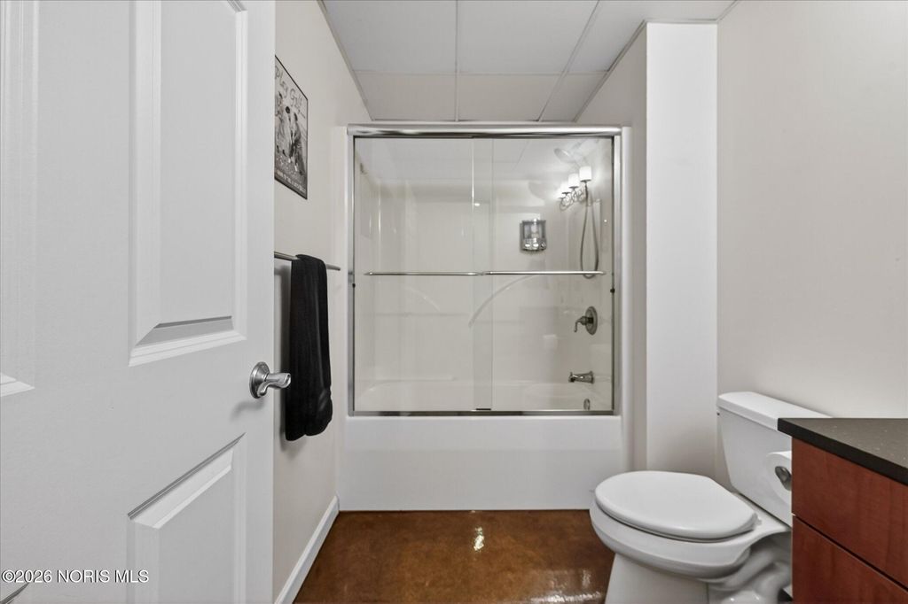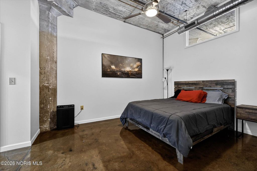 This stunning 2-bedroom, 2-bath condo showcases an open floor plan with soaring 11-foot ceilings, striking concrete pillars, and sleek epoxy concrete floors. Natural light fills the space through sliding doors that lead to a private balcony with breathtaking city views. The kitchen features stainless steel appliances, granite countertops, and a spacious island perfect for entertaining. The primary suite offers a walk-in closet, an additional closet, and an en-suite bath with granite counters, dual sinks, and a beautifully tiled shower. Enjoy exceptional amenities including a rooftop pool and BBQ area ideal for gatherings. Discover style, convenience, and vibrant city living at Bartley Lofts.