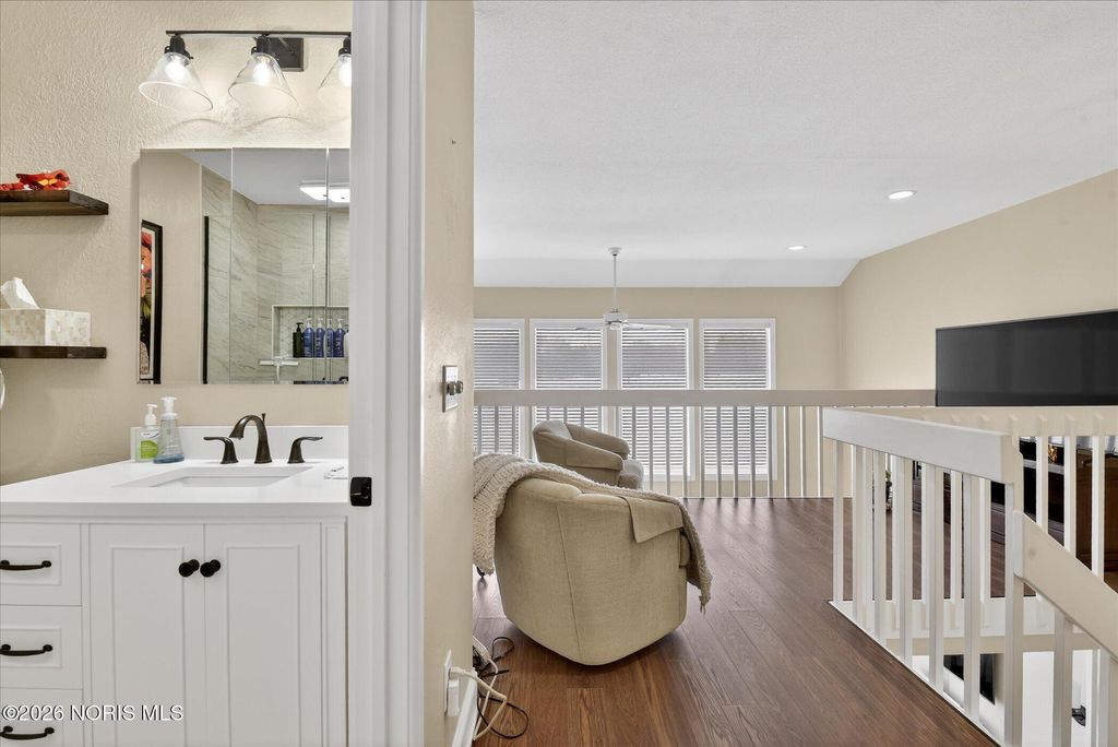 Welcome home to this beautiful Gem. Imagine not having to do anything but move in. Travertine floors throughout 1st floor, New Kitchen w/Maple cabinets & granted counter tops, newer stainless appliances. 1/2 bath updated, new maple cabinets w/granted top, upstairs walk-in shower w/tile new maple cabinets and Cortez counter. New wood floors on steps and all of 2nd floor. Liv rm & din rm w vaulted ceilings, & 2 story glass windows w/new slider. Great loft area, Nice size main bed/rm. New deck overlooking golf coarse w/ beautiful sunsets. Ceiling fans & much more. Close to shopping & expressway