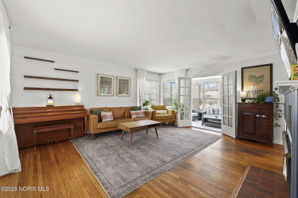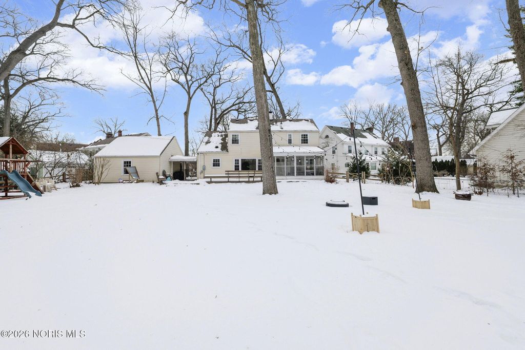 Well cared for home on private half acre parcel. Walking distance to schools. Open floor plan to maximize views of wooded and fenced lot. Family room with updated flooring and lighting. Living room with fireplace and hardwood floors, French doors lead to enclosed porch/sunroom with access to deck and private rear yard. Primary suite with tiled bath. Updated kitchen appliances, large 2 car garage attached by covered breezeway. Basement provides lots of storage.