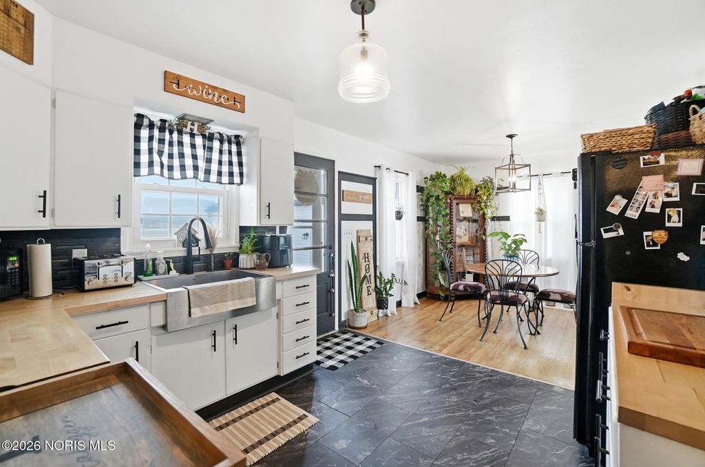 Beautifully remodeled country home on 1 acre at the edge of town, offering modern comfort, timeless charm, and true move in ready appeal. This 1,107 sq ft home has been thoughtfully updated throughout, featuring 2 bedrooms, 1 full bathroom, and a full basement with a partially finished area that expands your living and storage options. Sunlight fills the home, highlighting the hardwood flooring and luxury vinyl that create a warm, inviting flow from room to room. The fully remodeled kitchen blends farmhouse inspired style with modern convenience, showcasing fresh cabinetry, warm finishes, and updated lighting that adds character and brightness. The bathroom has been completely updated as well, giving the home a crisp, cohesive look. The basement has been refreshed with crisp, bright walls and a black painted ceiling, creating a modern, loft style vibe that is perfect for a rec room, workshop, or creative space. Step outside to a trex deck overlooking the beautifully landscaped yard, ideal for relaxing or entertaining. The expansive views of open country fields provide stunning sunrises and unforgettable sunsets, creating a peaceful backdrop for everyday living. The property includes a 2 car detached garage, and both the home and garage feature new metal roofs, along with new gutters and downspouts for long lasting durability. With county sewer, a propane furnace, and new A/C, the major systems are ready for years of comfort and reliability. Located on 1 acre at the edge of Harrod, this home blends peaceful surroundings with quick access to town conveniences. A turnkey, beautifully updated property ready for its next chapter. Schedule a showing for Sunday 2/15 when the home is active on the market.