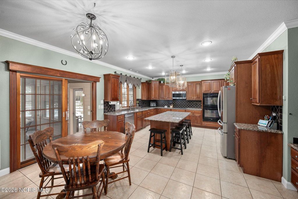 Welcome HOME! This property matches timeless architecture with modern refinement in one of Sylvania's most coveted neighborhoods. With over 3,300 square feet of thoughtfully designed living space, this Cobblestone-built residence offers both elegance and functionality. The heart of the home is a beautifully updated kitchen featuring a generous island, granite surfaces, elevated finishes, and new lighting that creates a warm, sophisticated ambiance perfect for both entertaining and everyday living. Fresh updates & finishes throughout give the entire home a crisp, current feel. The expansive primary suite serves as a true retreat, complemented by four additional spacious bedrooms on the upper level ideal for family, guests, or flexible use. The finished lower level expands your lifestyle possibilities with a recreation area, private office space, and guest bedroom, now enhanced with new luxury vinyl plank flooring for a clean, modern look. Step outside to a professionally landscaped, fully fenced backyard designed for memorable gatherings, complete with an enclosed patio, deck, and inviting firepit area. Additional updates include a new cooktop, dishwasher, updated flooring, and newer mechanicals including the hot water tank. This is more than a home... it's a statement of comfort, space, and refined living in a premier Sylvania location.