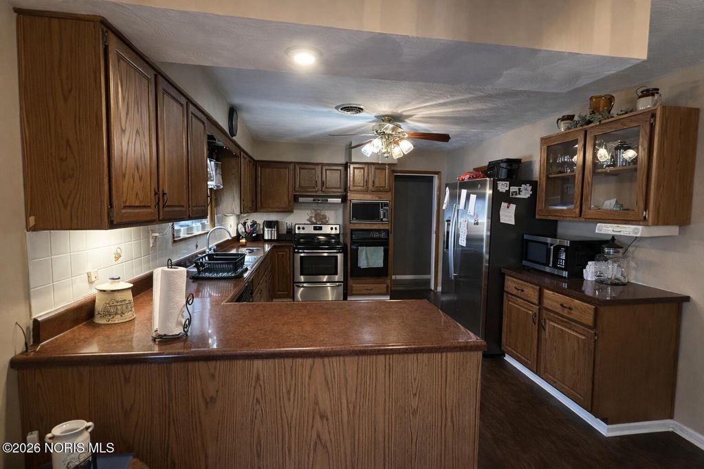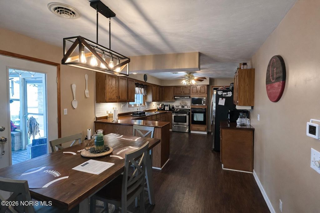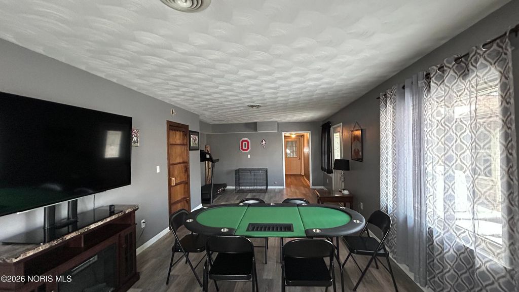 Welcome to 742 E Perry Street, Paulding, OH 45879! This immaculate home offers 2,542 sq ft of living space, featuring 5 bedrooms and 3 full bathrooms with room for everyone to spread out. Step inside to a generously sized living room with beautiful wood floors and a large picture window that fills the space with natural light. The open kitchen and dining area offers spacious cabinetry and a stylish light fixture over the dining table, perfect for everyday meals or hosting. Just off the kitchen is a complete utility room with ample cabinetry providing plenty of storage, along with an additional family room featuring its own bedroom and full bathroom, ideal for guests, in-laws, or a private home office setup. On the opposite wing of the home, you'll find the primary bedroom along with two additional bedrooms, all featuring original hardwood floors. The primary bathroom shower has been newly re-tiled, and the back family room offers recently updated carpet, adding comfort and a fresh feel to the space. Off the dining area, step into a beautiful sunroom overlooking the backyard,perfect for morning coffee or relaxing evenings. The stamped concrete walkway leads you to the front entry from the driveway, adding great curb appeal. Outside, enjoy summer days in the above-ground pool and take advantage of the detached 24x36 garage with storage and a full man cave above,the perfect spot for watching the big game, hosting friends, or creating your own hangout space. This one checks all the boxes,space, layout, updates, extras, and a great location. Call today to schedule your private showing!