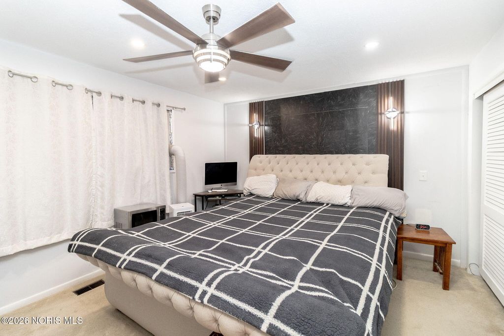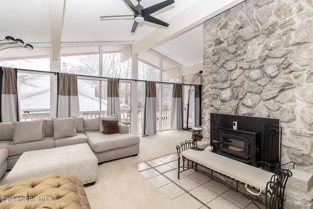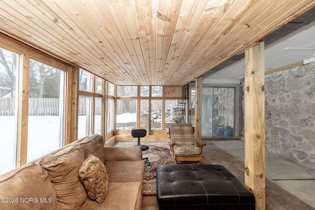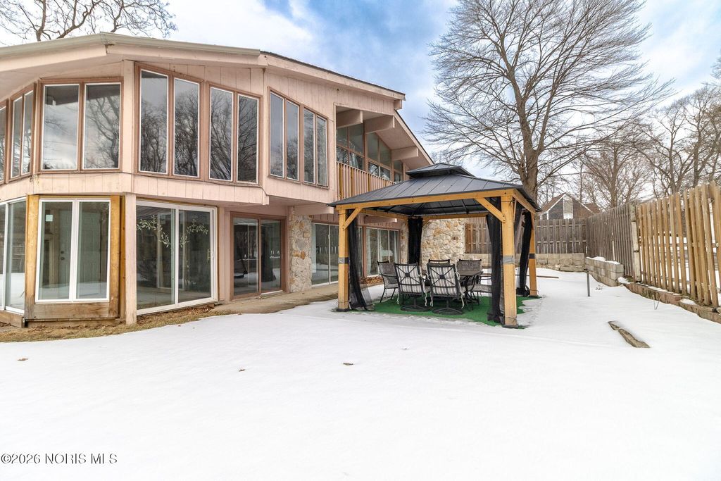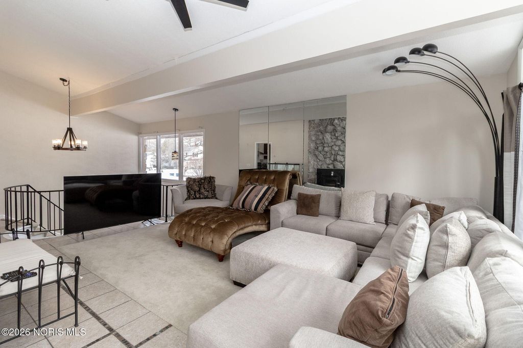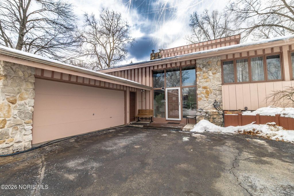 Welcome to this striking MID-CENTURY MODERN bi-level home, where clean architectural lines and WALLS OF WINDOWS create a bright, inviting atmosphere throughout! A mix of natural materials including stone and wood are designed to complement the style of the house. Expansive picture windows flood the home w/ natural light, creating a seamless connection between indoors and outdoors! Inside, the upper level offers an airy living room highlighted by vaulted ceilings, a stone hearth fireplace and glass sliders leading to a side balcony. Warm wood tones continue into the dining area and open family room w/ floor-to-ceiling windows - truly an amazing space w/ virtually endless possibilities. Stunning, RENOVATED KITCHEN provides functional workspace and easy flow, perfect for both everyday living and entertaining, offering ample cabinet space and plenty of storage w/ a large pantry. 5 bedrooms (3 up and 2 down), 3.5 bathrooms (2 up and 1.5 down). The lower level provides TONS of additional living space including a large rec room w/ massive stone fireplace. Additional lower-level living includes enclosed patios and multiple access points to the back yard! Outside you'll find a private fenced-in yard w/ mature trees, upper level deck/balconies and a beautiful gazebo and patio area PERFECT FOR ENTERTAINING! BIG-TICKET updates include: ROOF ('22); FURNACE & CENTRAL AIR ('25).