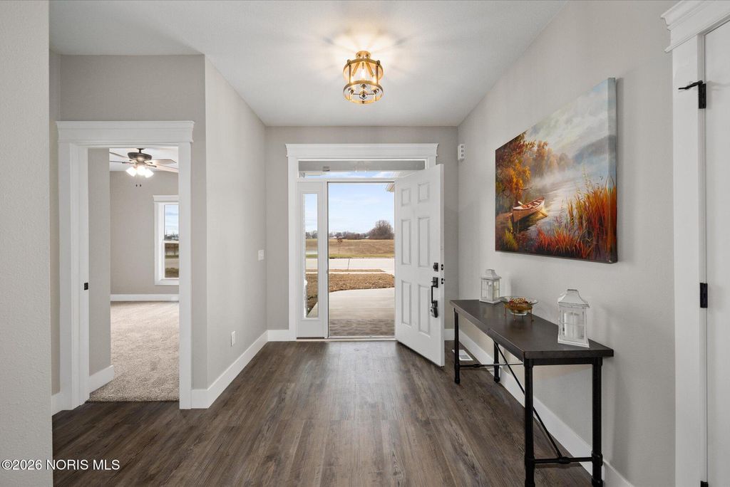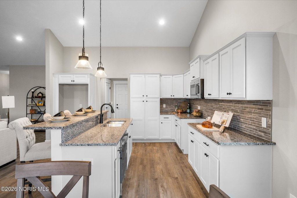 New Construction by Timber Creek Builders. Full basement, 8 ft foundation- basement walls. 1828 sq feet, very popular open floor plan with 9ft ceilings. White kitchen cabinets, trim and doors. Granite counter tops, LVP flooring on the main floor, carpet in the bedrooms. Large walk in master closet. Full basement with painted walls and epoxy concrete floor for a great finished feel. Epoxy garage floor with Upgraded18x8 insulated garage door. 20ft concrete driveway, rear concrete patio.