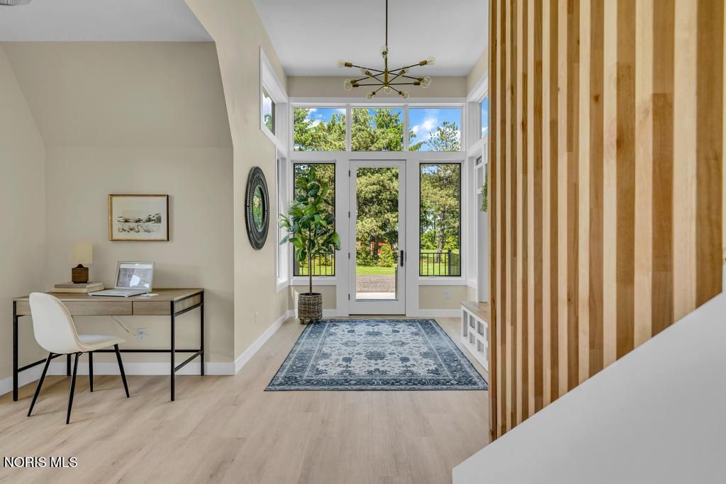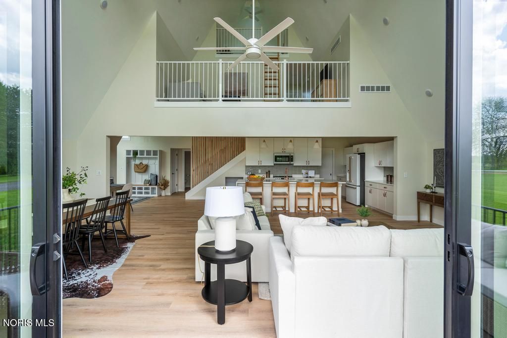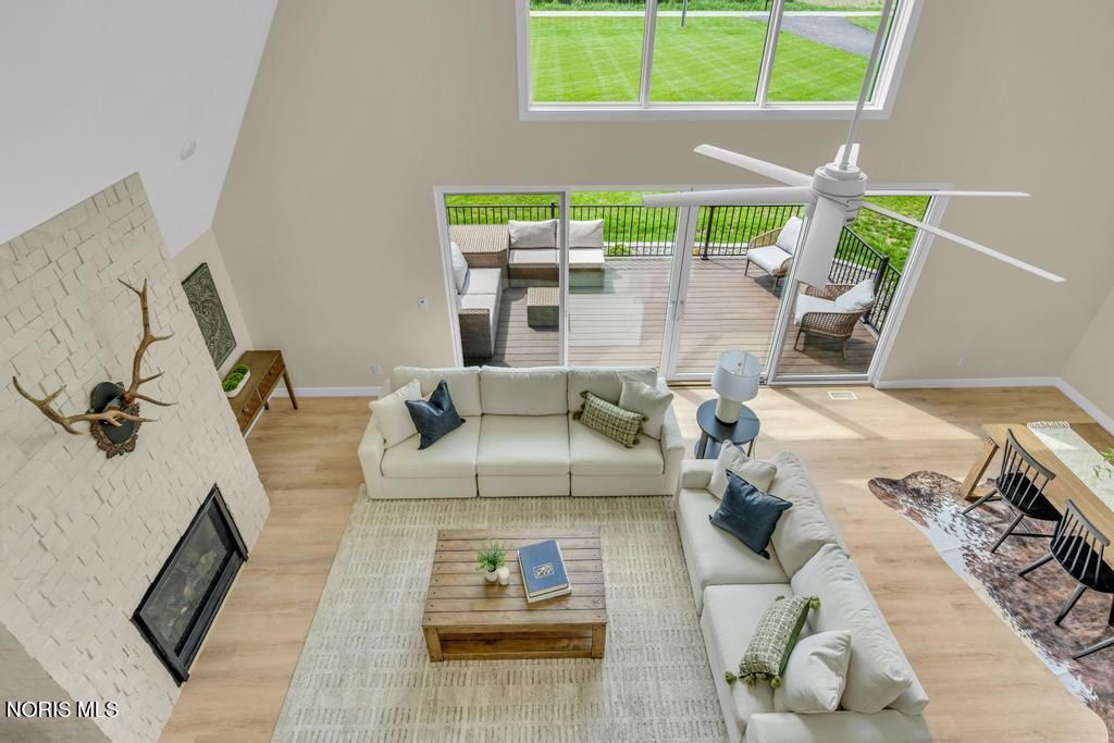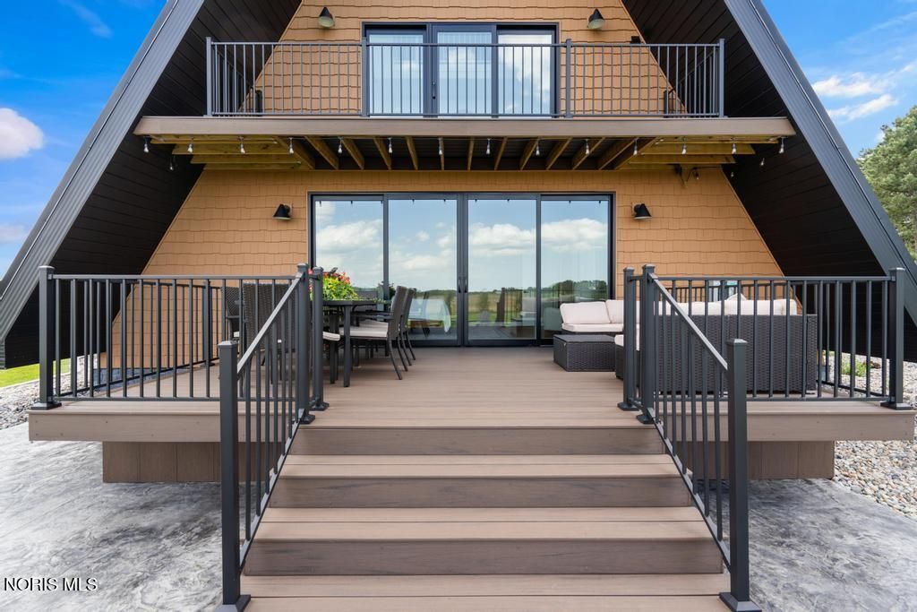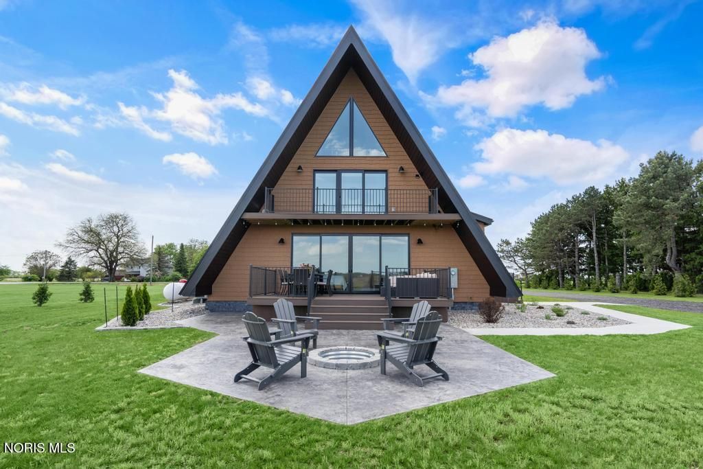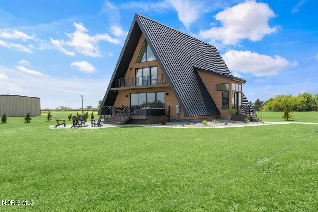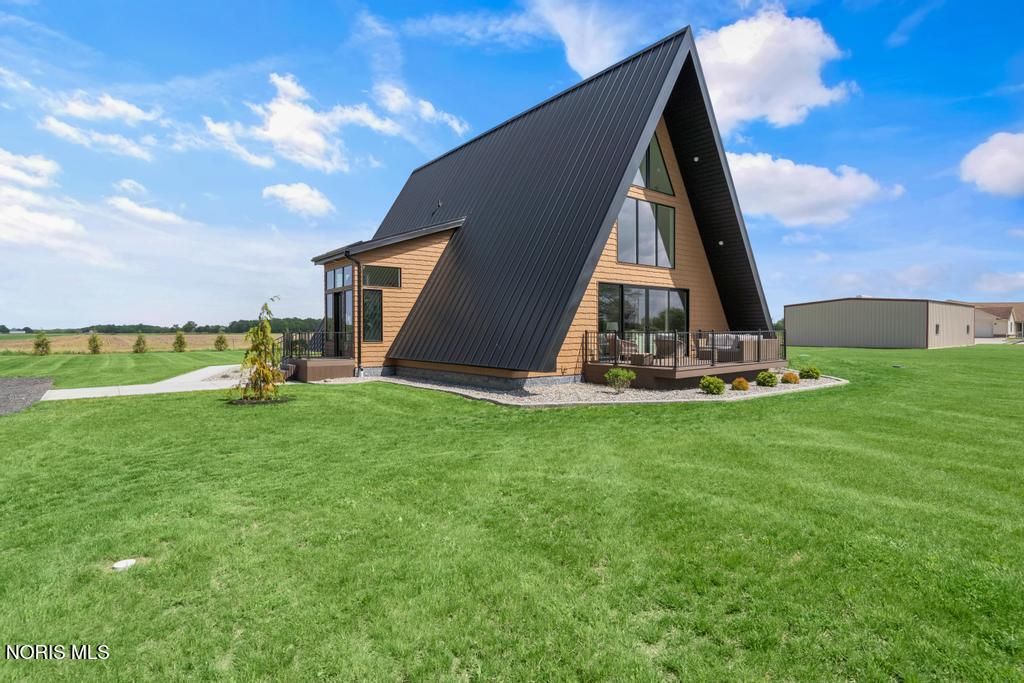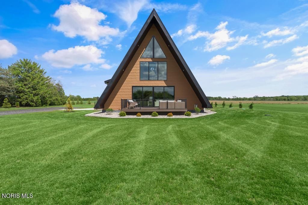 Online Only Auction! Min Bid $300,000. Auction has started and ends on March 26th at 3:00PM. Open House preview is Sunday, March 22nd from Noon to 2PM. This home is stunning! Experience the perfect blend of architectural style and high-performance construction in this stunning custom-built modern A-frame set on a peaceful 1.25-acre country lot. Designed for low-maintenance living and long-term efficiency, this one-of-a-kind retreat showcases premium finishes and thoughtful upgrades throughout. The home features Café smart appliances, dramatic quartz waterfall countertops, durable Luxury Plank Vinyl flooring, and a custom terrazzo tile shower. High-end windows and doors, whole-house spray foam insulation, a conditioned crawlspace with ICF poured wall foundation, and hybrid HVAC deliver exceptional comfort and energy efficiency year-round. Outdoor living shines with four premium composite decks and a stamped concrete patio with a built-in fire pit, ideal for entertaining or relaxing under the stars. A standing seam metal roof and vinyl shake-style siding provide lasting durability and curb appeal. Additional highlights include two versatile loft areas perfect for bedrooms or sleeping spaces, plus a prepared 30' x 60' stone pad ready for an RV or boat or pole barn. Located in a quiet country setting just a short drive from top recreation areas, this property is ideal as a luxury getaway, full-time residence, or high-end rental opportunity for 30 day rental. Brand new and never lived in. Don't miss out on a great auction! Genoa schools.