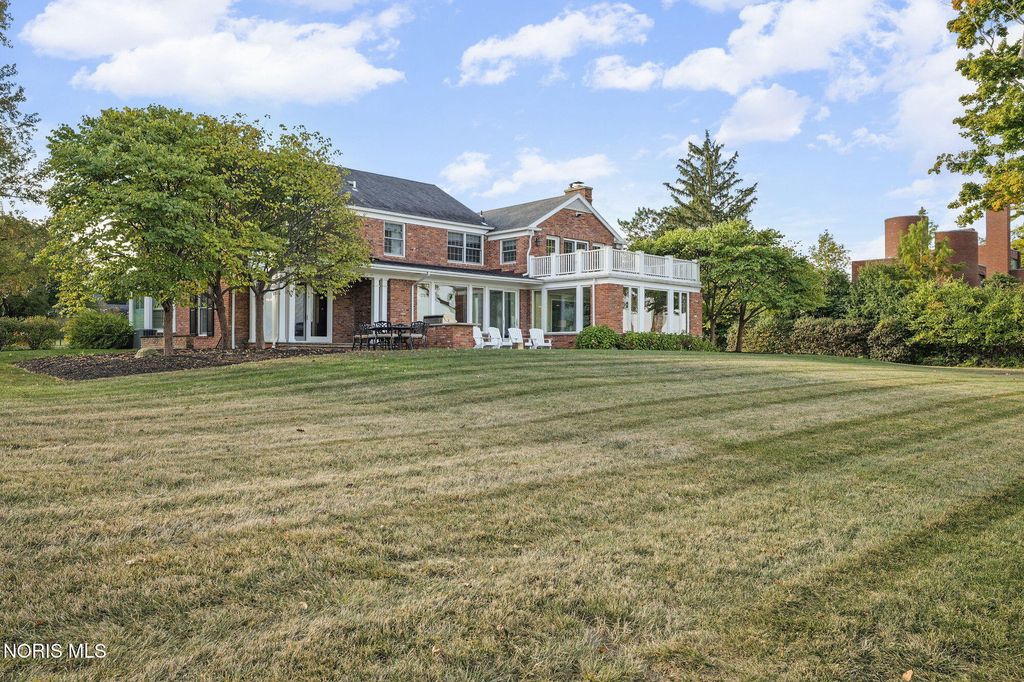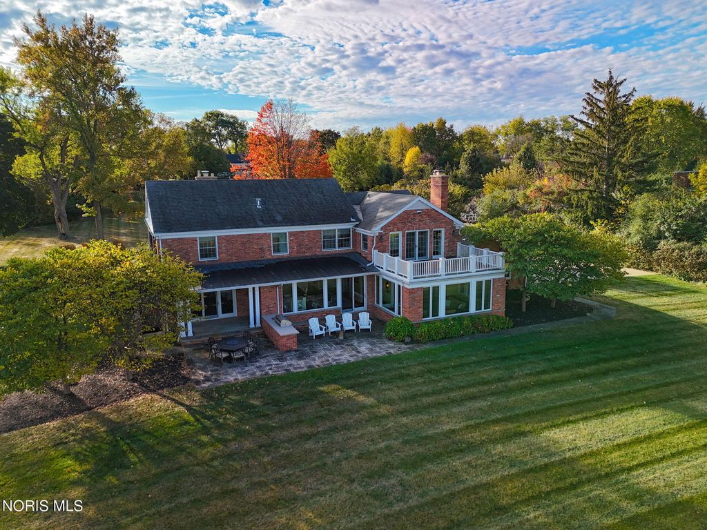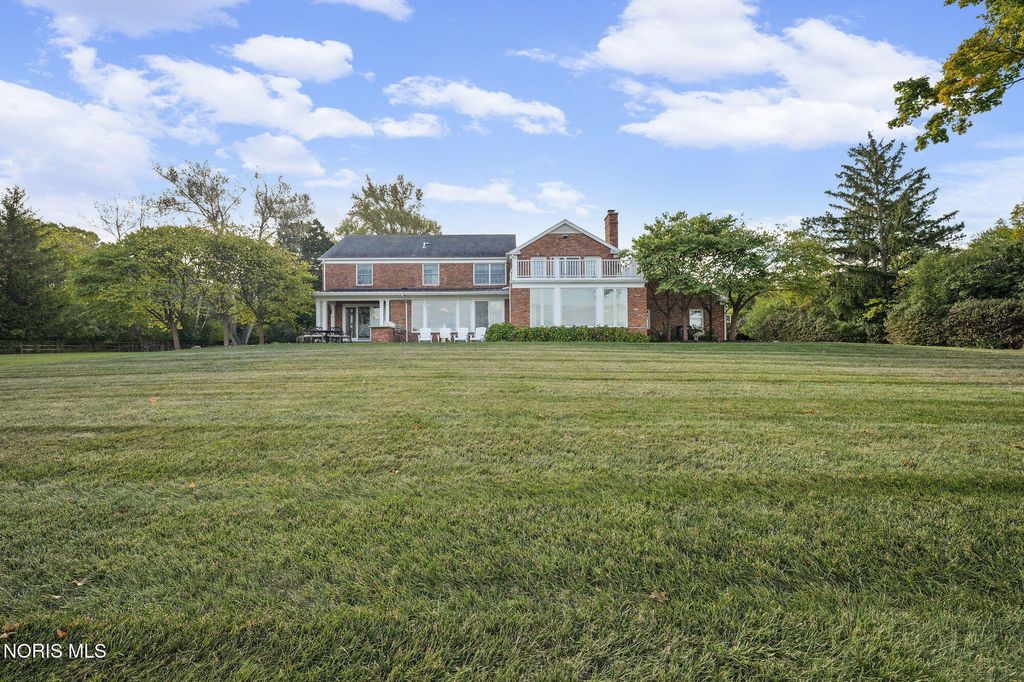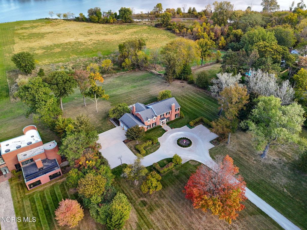 A rare opportunity to own a Mount Vernon-inspired Colonial estate set on 9 breathtaking acres just minutes from historic downtown Perrysburg. This riverfront retreat offers deep-water access and sweeping, unobstructed views of the Maumee"”an everchanging backdrop of wildlife, water, and natural beauty. This home reflects timeless craftsmanship and a commanding architectural presence. With 5 bedrooms and 5 bathrooms (4 full, 1 half), it delivers both grandeur and comfort. The stunning primary suite is perched on the upper level, featuring a private balcony that captures the most majestic river vistas on the property. Wake to sunlit water, unwind to evening reflections, and savor the serenity that defines this estate. Every room along the back of the home is oriented to frame the scenery, creating a seamless connection between indoor living and the outdoors. The expansive 5,580 sq ft floorplan includes a beautifully finished 1,240 sq ft lower level, offering additional space for recreation, relaxation, or entertaining. Originally built with enduring quality and thoughtfully renovated in 2013-2014, the home blends classic architectural character with modern livability. The long, treelined drive, stately brick façade, and manicured grounds set the tone for a lifestyle of privacy, elegance, and connection to nature. A property of this scale and setting is exceptionally rare"”an iconic riverfront estate offering unmatched beauty, space, and proximity to Perrysburg's vibrant downtown.