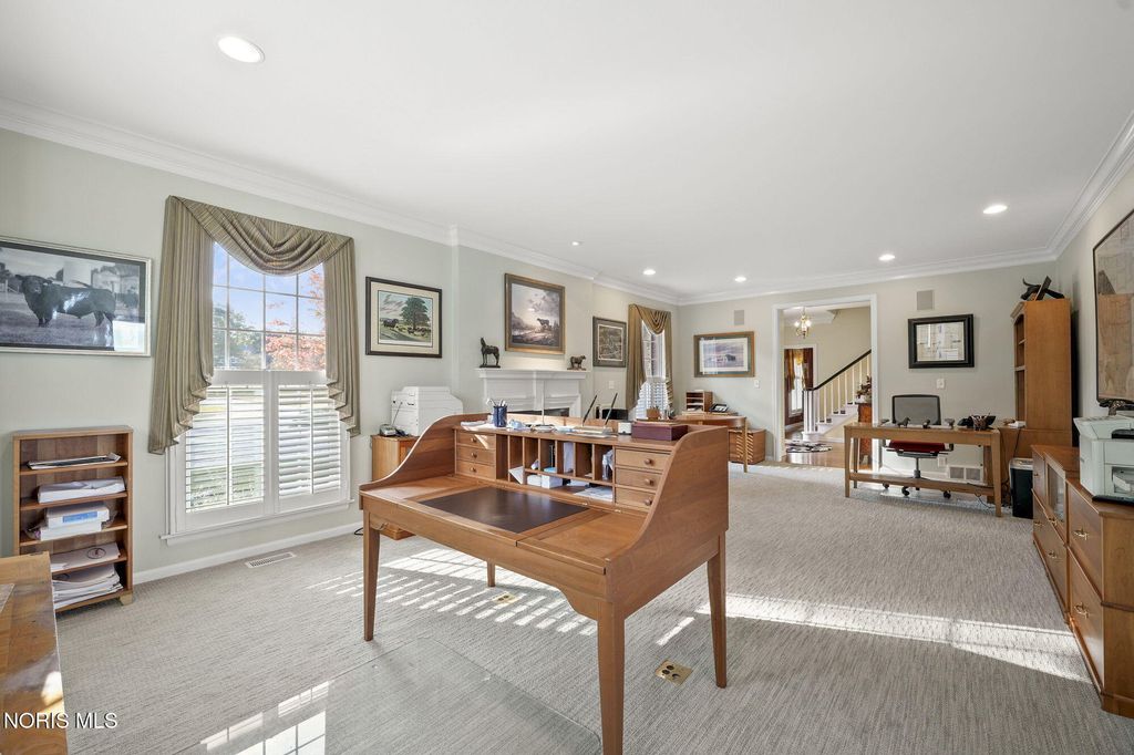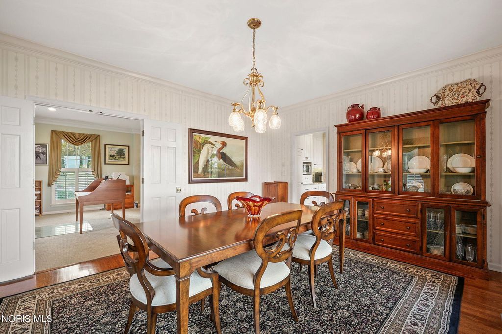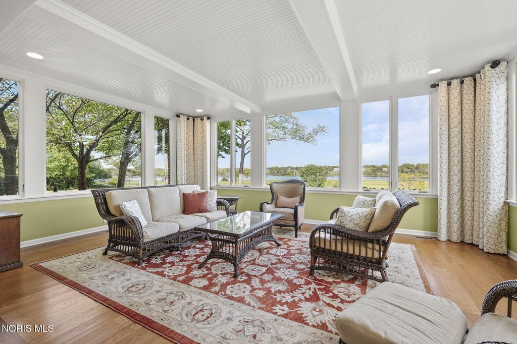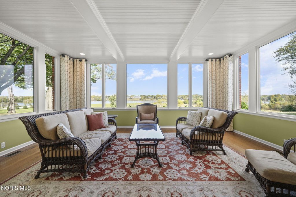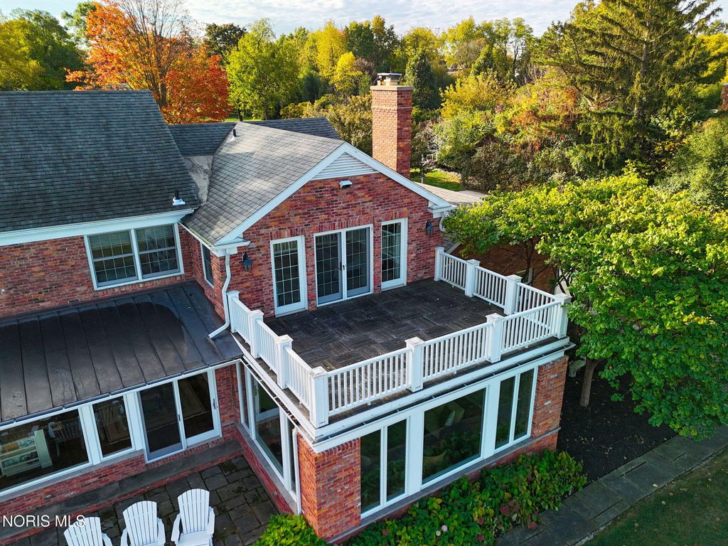 A rare opportunity to own a Mount Vernon-inspired Colonial estate set on 9 breathtaking acres just minutes from historic downtown Perrysburg. This riverfront retreat offers deep-water access and sweeping, unobstructed views of the Maumee"”an everchanging backdrop of wildlife, water, and natural beauty. This home reflects timeless craftsmanship and a commanding architectural presence. With 5 bedrooms and 5 bathrooms (4 full, 1 half), it delivers both grandeur and comfort. The stunning primary suite is perched on the upper level, featuring a private balcony that captures the most majestic river vistas on the property. Wake to sunlit water, unwind to evening reflections, and savor the serenity that defines this estate. Every room along the back of the home is oriented to frame the scenery, creating a seamless connection between indoor living and the outdoors. The expansive 5,580 sq ft floorplan includes a beautifully finished 1,240 sq ft lower level, offering additional space for recreation, relaxation, or entertaining. Originally built with enduring quality and thoughtfully renovated in 2013-2014, the home blends classic architectural character with modern livability. The long, treelined drive, stately brick façade, and manicured grounds set the tone for a lifestyle of privacy, elegance, and connection to nature. A property of this scale and setting is exceptionally rare"”an iconic riverfront estate offering unmatched beauty, space, and proximity to Perrysburg's vibrant downtown.