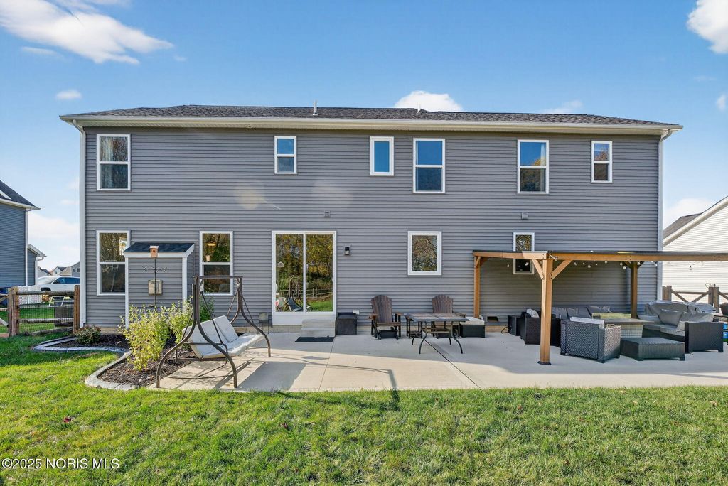 Welcome to 938 Wilkshire Drive in Waterville Meadows--a stunning modern-classic home built in 2021 and enhanced in 2025 with thoughtful updates throughout. The open floor plan features a bright two-story entry, spacious great room with gas fireplace, and a gourmet kitchen with white cabinetry, quartz countertops, stainless appliances, walk-in pantry, and large island. Upstairs offers generous bedrooms, a convenient second-floor laundry, and a serene primary suite with dual vanities, soaking tub, and walk-in closet. The finished basement adds even more versatile living space. Recent 2025 upgrades include a 7-ft driveway extension, 24x16 patio with pergola, full landscaping with concrete border, water-powered backup sump pump, and new LVP flooring in the dining room. Situated on a quiet street with a private backyard and easy access to parks, schools, and all that Waterville has to offer--this home is truly move-in ready.