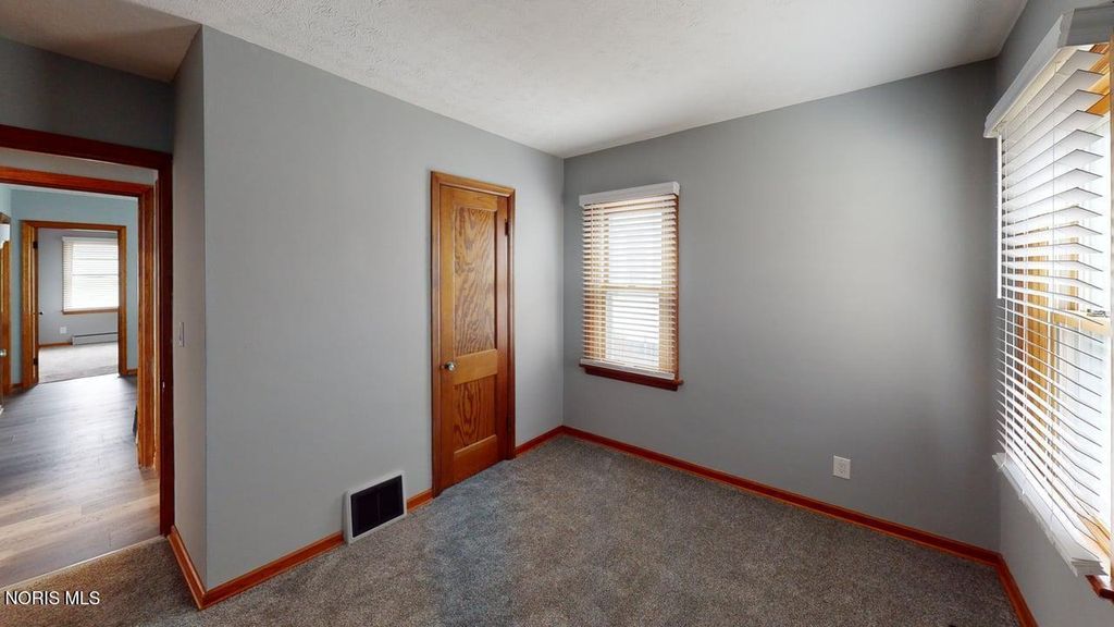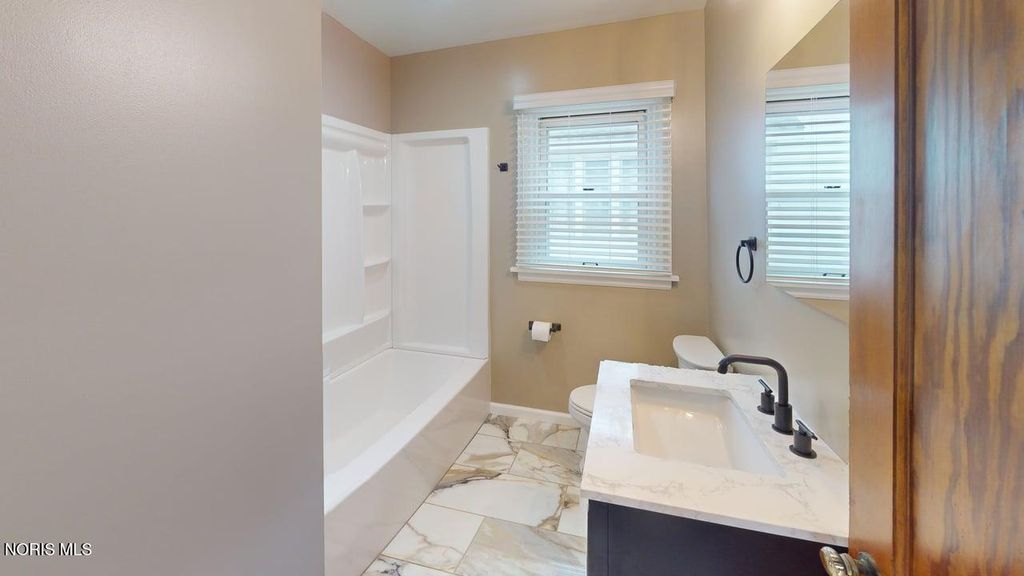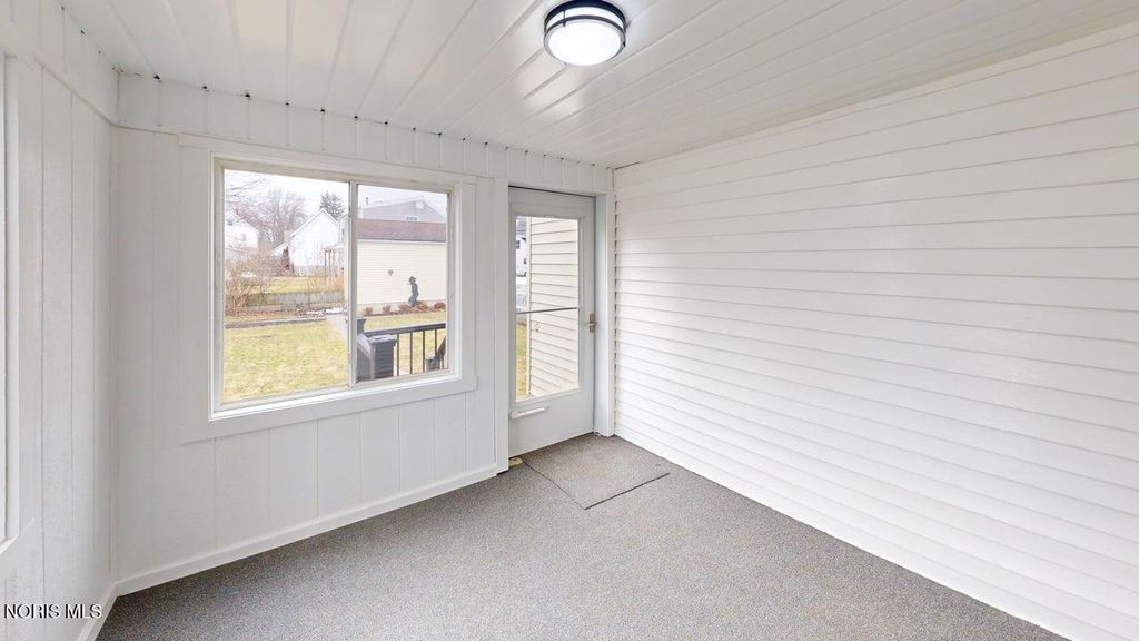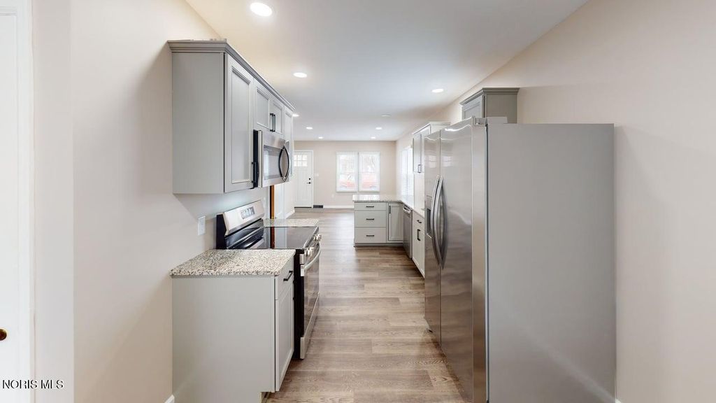 Completely Renovated & Move-In Ready, amazing 2-3 Bedroom home! Extensively updated throughout 2025 and 2026, this beautifully refreshed open floor plan home blends modern style with quality improvements. The living room, kitchen, and eat-in area feature all new drywall, electrical, plumbing, insulation, vinyl windows and LED recessed lighting complemented by Stainmaster luxury vinyl plank flooring for a clean, cohesive look. The redesigned kitchen showcases gray cabinetry with crown molding accents, matte black hardware, granite countertops with under mount stainless steel sink, and a full suite of new stainless steel appliances plus a pantry! The fully renovated bathroom offers a fresh, modern feel and features thoughtful design flare! Ceramic tile flooring, a sleek black modern vanity, medicine cabinet, updated tub/shower surround, and an exhaust fan with heat and light, finished with a striking gold vanity fixture. Throughout the home, 2-inch blinds with crown-molding style valances add a polished touch. Enjoy additional living space in the enclosed back sun porch with new carpeting and a new storm door, plus updated black vinyl railings and new exterior lighting. New entrance doors and landscaping enhance curb appeal, while a detached garage with alley access provides convenient parking. A full basement, gas forced-air furnace, and central air complete this extensively improved property, offering comfort and functionality throughout. Laundry hookups in the basement and also room for recreation space or storage! Seller also applied for the Community Reinvestment Area program to lock in taxes at the current rate for the next 10 years that will continue to the new owner.