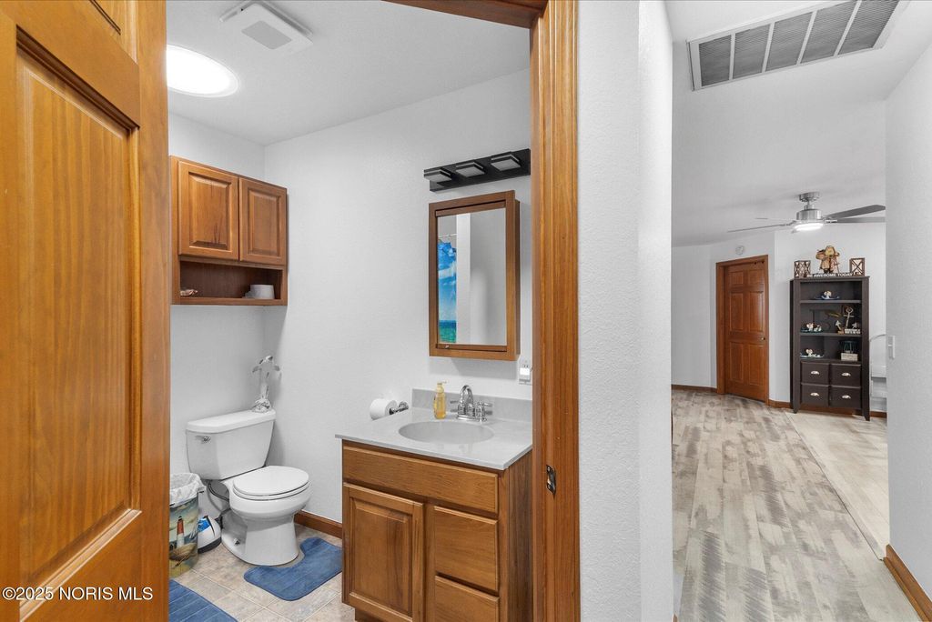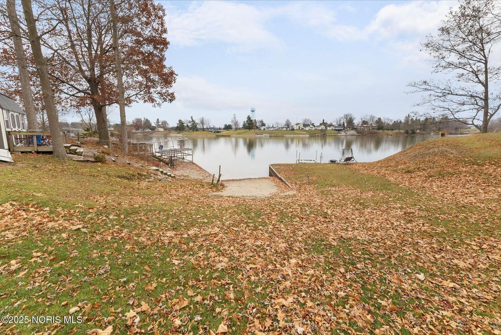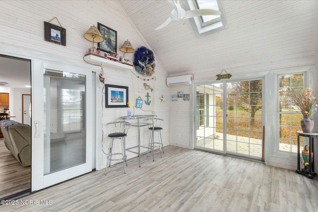 Welcome to this beautifully maintained 1,356 sq ft lakefront home offering 3 bedrooms and 2 full bathrooms on a 0.59-acre lot on a private, all-sports lake. The home features beautiful architectural rooflines, abundant natural light, and an independently heated and cooled sun room with cathedral ceilings. New master walk-in shower. New paint throughout the majority of the home! New LED lights through the inside and outside of the home. All new ceiling fans throughout. Outdoor amenities include 112 ft of lake frontage supported by a new steel seawall installed in Spring 2024, a 46x22 private sandy beach, a front covered porch, a rear deck, and a spacious rear patio extending from the deck to the garage side door. The insulated two-car garage includes a hanging propane heater for year-round comfort. A standout feature is the charming shed, complete with a front porch and overhead garage door, ideal for a golf cart or recreational storage. This unique lakefront property offers comfort, privacy, and exceptional outdoor living. Association fees are $1,050 annually, with an additional $1,000 dredging costs for the 2026 and 2027 seasons.