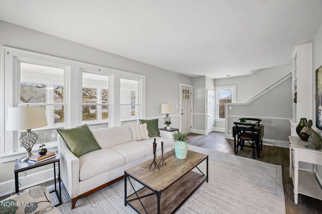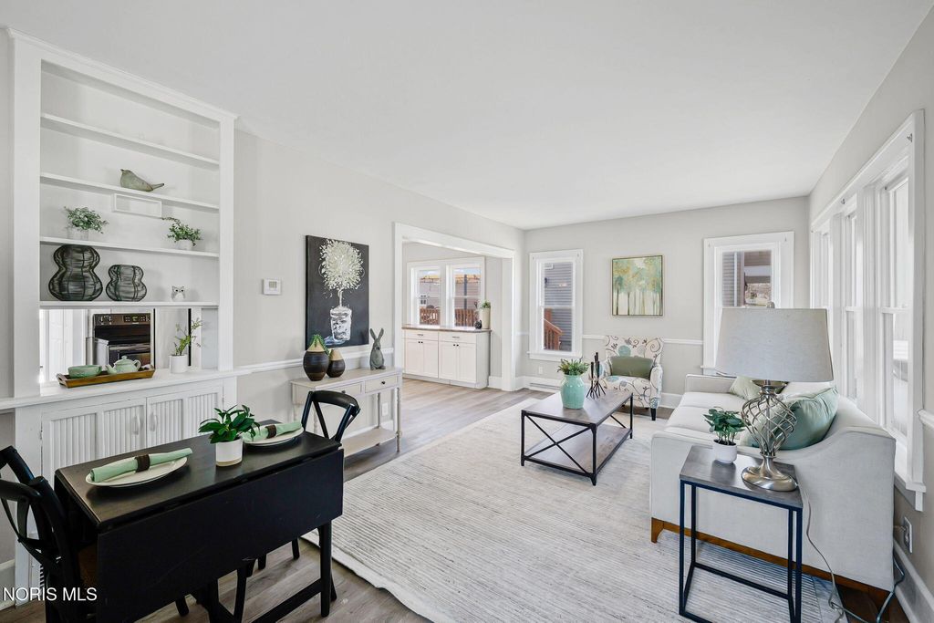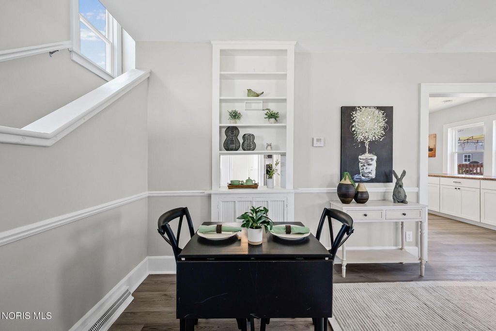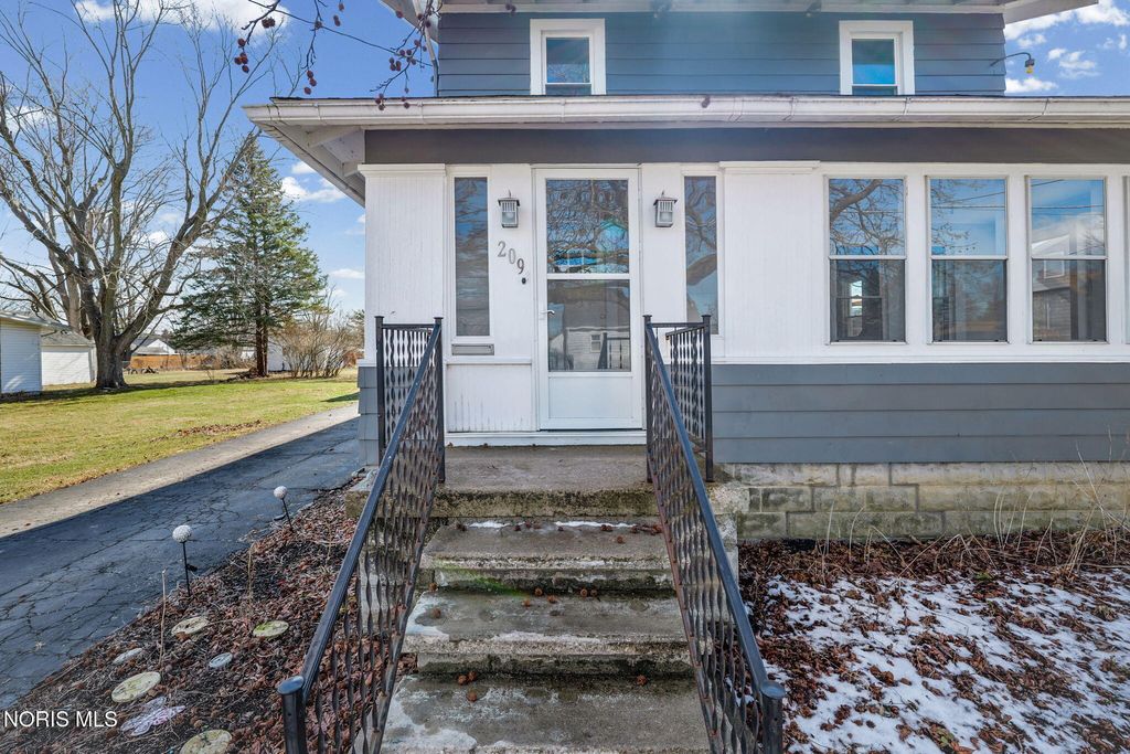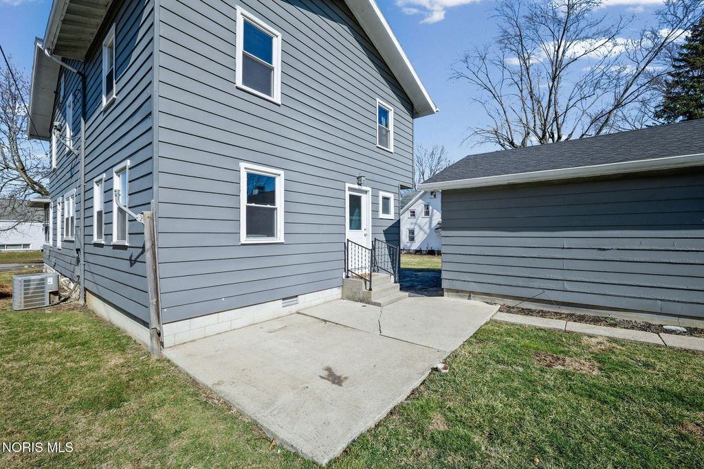 Conveniently located close to the hospital and the amenities of downtown Findlay! This nicely updated home is filled with character throughout. You are sure to enjoy spending Summer evenings on the front porch! Inside you are welcomed by an adorable living room with built-in shelves and space for relaxing and dining. The heart of the home is the kitchen boasting quartz counters, black stainless appliances, and large buffet space, perfect for a coffee bar or entertaining. Separate family room is ideal for everyday living. Mudroom has space for outerwear and includes the laundry area and half bath. Upstairs features all four bedrooms, one of which could serve as an office. The primary bedroom features an ensuite bath with shower and walk-in closet. Unfinished basement has an Everdry system that is transferable to the new owner. Detached two car garage offers plenty of storage space. Oversized lot and patio provide ample space to enjoy time outside!