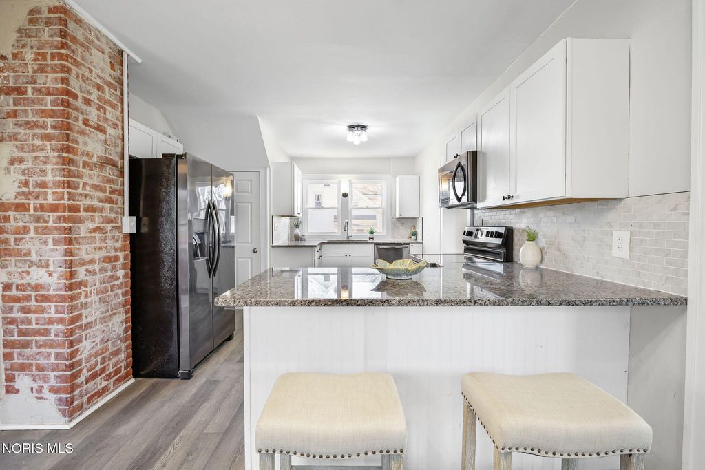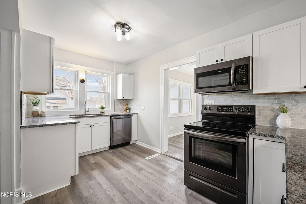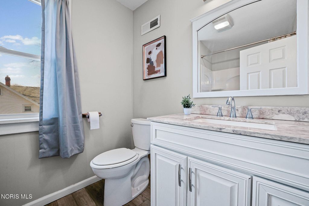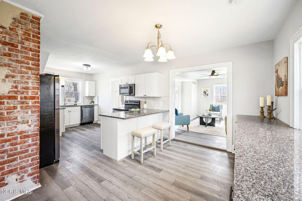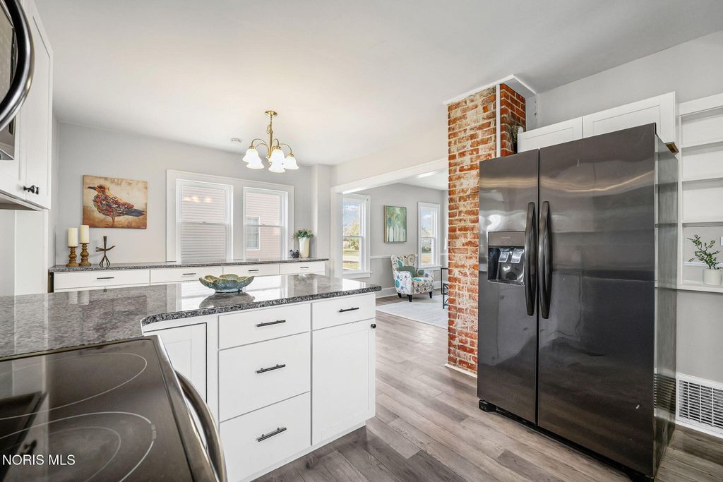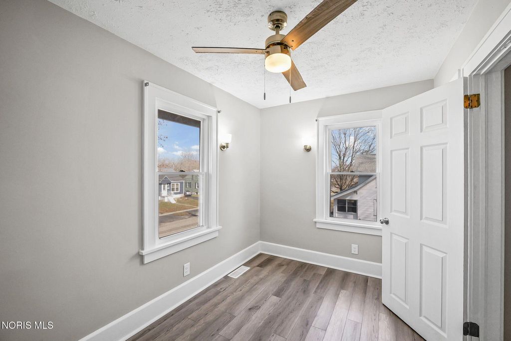 Conveniently located close to the hospital and the amenities of downtown Findlay! This nicely updated home is filled with character throughout. You are sure to enjoy spending Summer evenings on the front porch! Inside you are welcomed by an adorable living room with built-in shelves and space for relaxing and dining. The heart of the home is the kitchen boasting quartz counters, black stainless appliances, and large buffet space, perfect for a coffee bar or entertaining. Separate family room is ideal for everyday living. Mudroom has space for outerwear and includes the laundry area and half bath. Upstairs features all four bedrooms, one of which could serve as an office. The primary bedroom features an ensuite bath with shower and walk-in closet. Unfinished basement has an Everdry system that is transferable to the new owner. Detached two car garage offers plenty of storage space. Oversized lot and patio provide ample space to enjoy time outside!