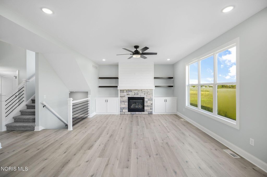 This 4-bedroom, 3-bath new construction home by Leffler Builders combines superior craftsmanship with refined design. Featuring spacious room sizes and 5-star energy efficiency, it offers luxury vinyl plank flooring, custom built-ins with floating shelves, designer fixtures, LED lighting throughout and beautifully detailed tile work. The open-concept living area includes a fireplace that creates a warm focal point for everyday living and entertaining, while the expansive primary suite provides exceptional comfort with a large walk in closet and a spa-like bathroom. A fully framed and insulated basement, pre-plumbed for a future bath, adds flexibility for growth. The exterior is completed by a stamped patio with professional landscaping and a full irrigation system. Situated in Coventry Glen within the Anthony Wayne School District, this home delivers quality construction, everyday convenience, and a welcoming neighborhood atmosphere in one exceptional setting. Have peace of mind with an industry leading 1 year home warranty.