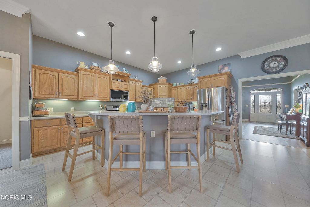 Welcome to your private retreat on nearly 7 acres of stunning land, complete with mature trees, established trails, and a peaceful pond. This property offers incredible scale with a total of 4,047 square feet of living space, perfectly split between two levels. The main floor features 2,024 sq ft of bright, open living space with high ceilings, new flooring, and a primary suite boasting a large walk-in closet and private bath. The 2,023 sq ft finished basement nearly doubles your footprint, providing a massive area for recreation or guests. With 5 bedrooms and 3 baths in total, there is room for everyone. Enjoy two charming fireplaces or head outside to the impressive pole barn featuring a lean-to for extra parking. This is a rare find for those seeking space, storage, and a beautiful natural setting.